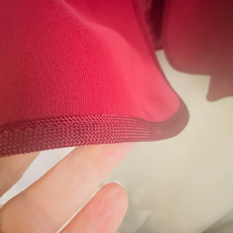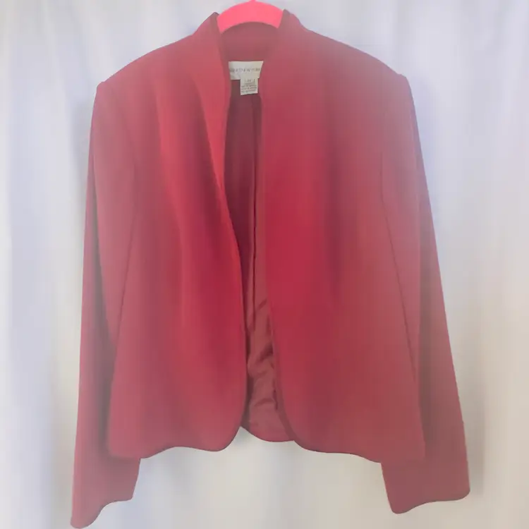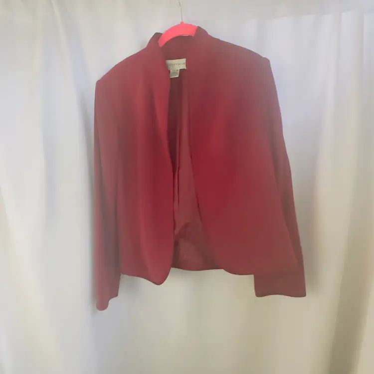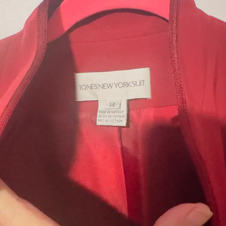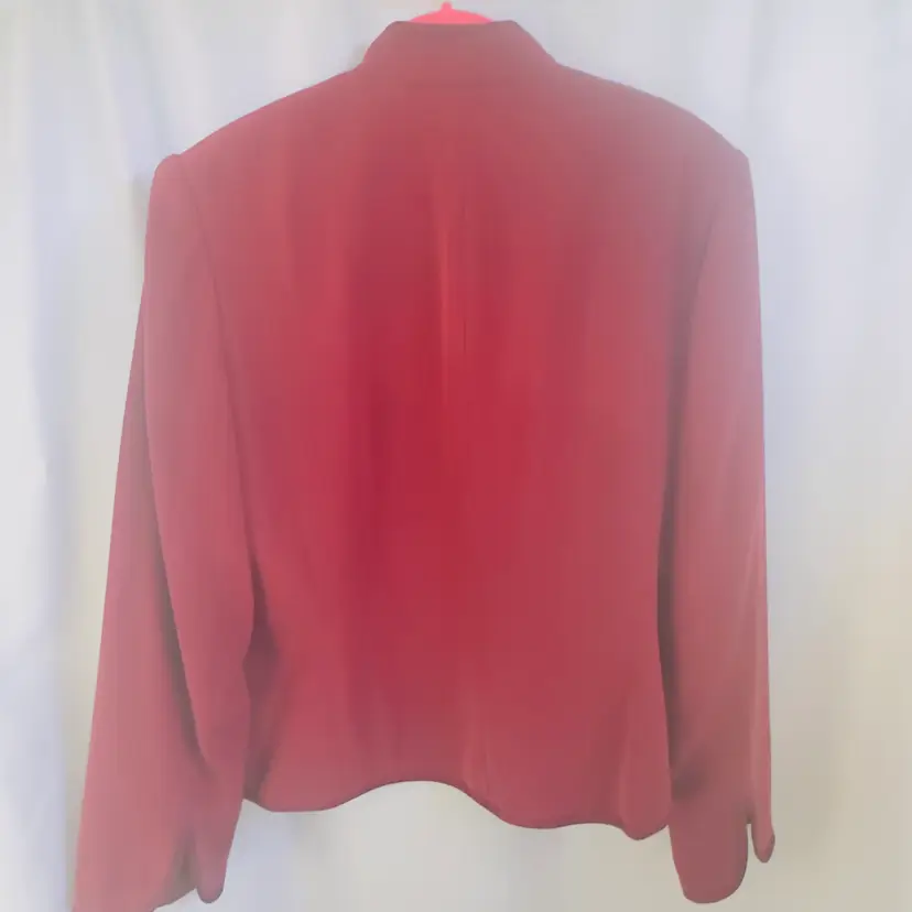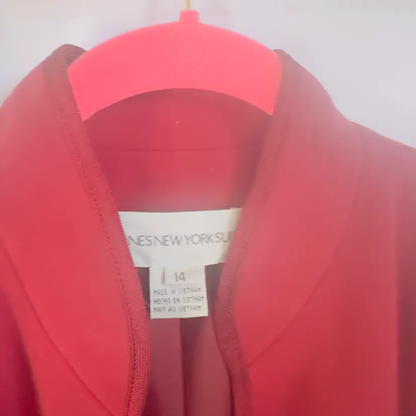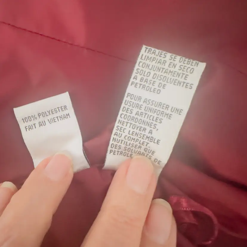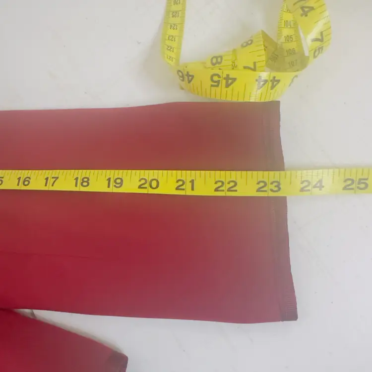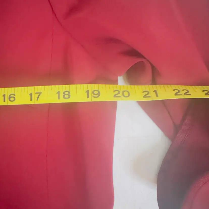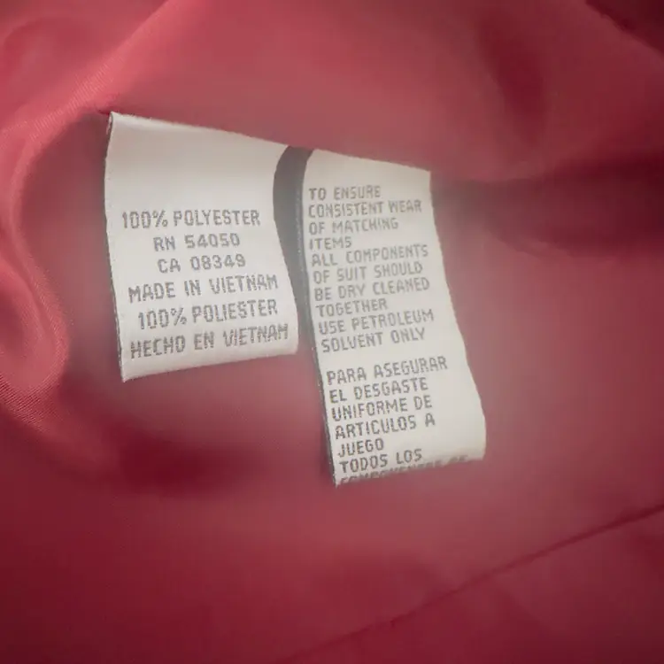 100% poly, split on each wrist, no pockets, arm 23"-pit to pit 20"- neck to hem 24" in very good condition, no stains or tears