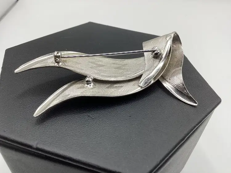 Brand: Unknown Features: 3 ribbon like strands / Textured chevron design / Polished edges Material: Metal Pattern/Design: Chevron Color: Silver tone Measurements: Height - 1 & 3/4” Width - 2 & 3/4”