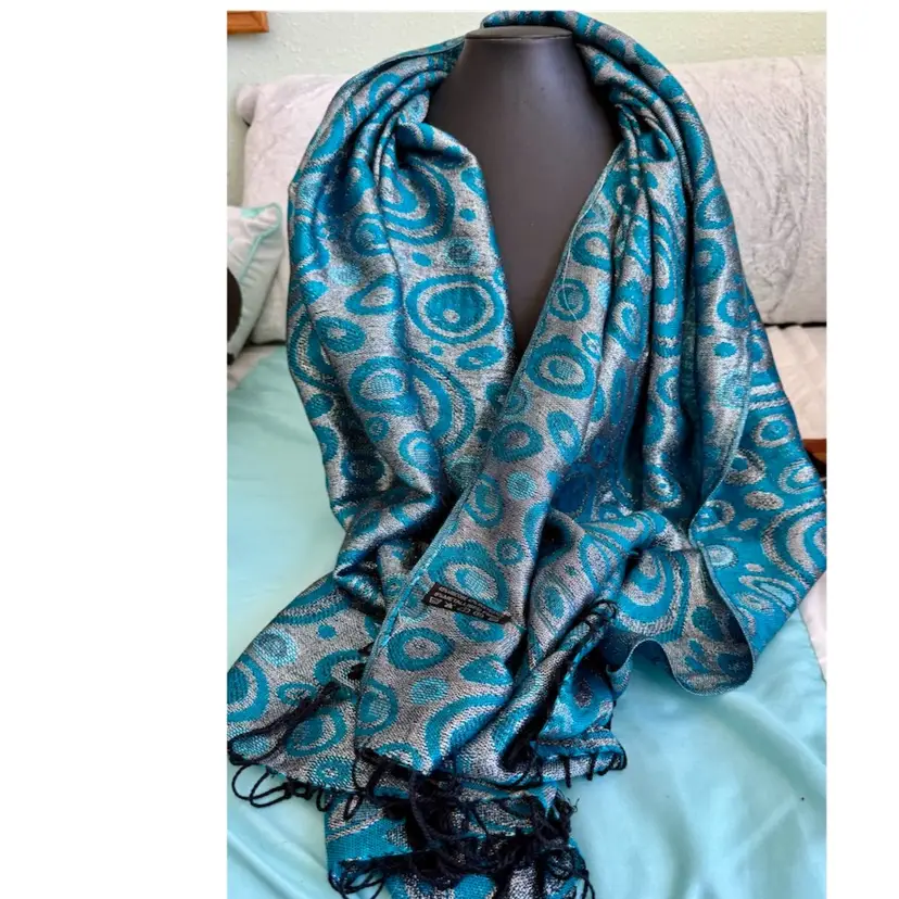 17/ Large Blue And Silver Scarf Shawl