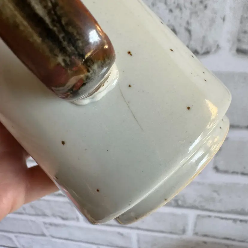 Good vintage condition with minor crazing near handle. 5-1/4” tall, 3” dia not counting handle
