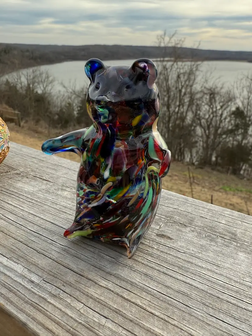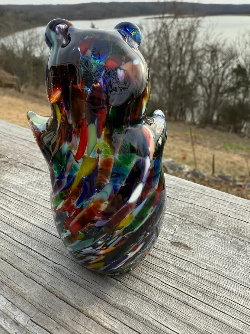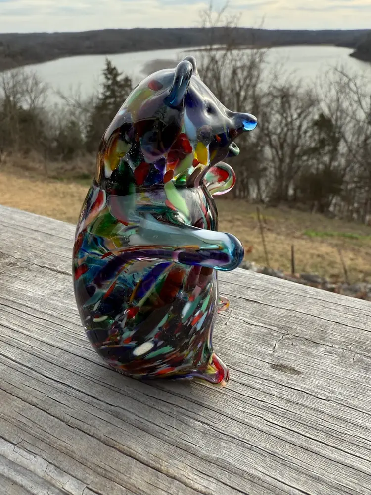 Heavy bear by Pairpoint Glass (MA). Retains original "Hand Made by Pairpoint" silver label.