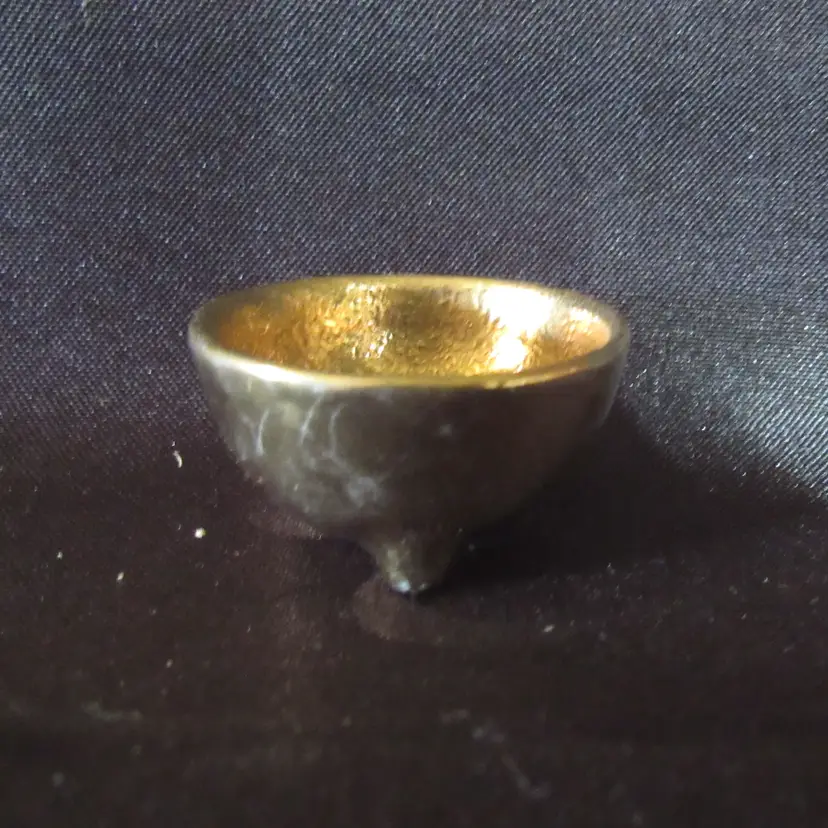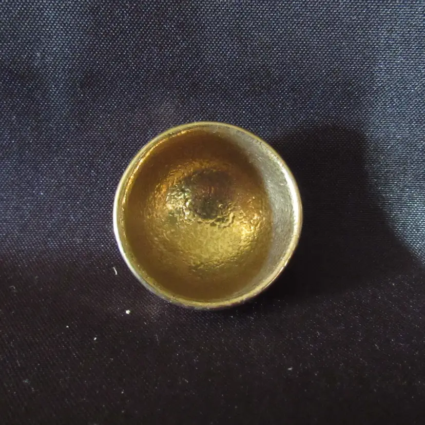 This porcelain salt is approx. 1" tall x 1 5/8" across. Gold inside and out. Inside has a pebbled texture. No markings. It is in excellent condition with no chips, cracks or breaks.