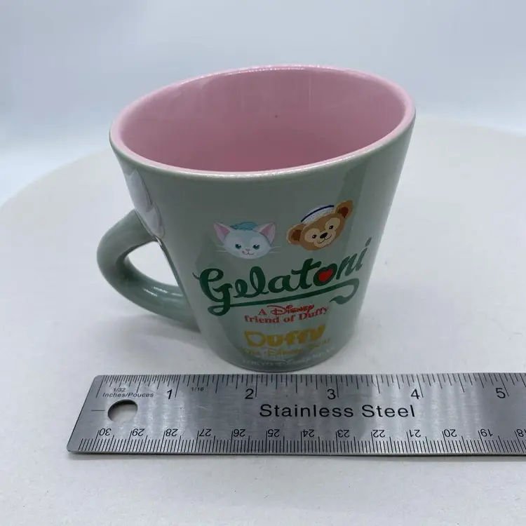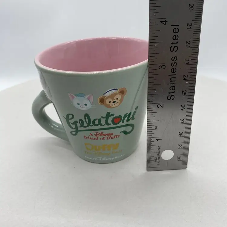 The Gelatoni Duffy Disney Mug in Pink and Green is a charming collectible piece made in Thailand. Standing at 3 inches tall, this mug features a delightful design that will appeal to Disney fans and collectors alike. Add a touch of Disney magic to your morning coffee routine with this adorable and unique piece from the Disneyana franchise. Perfect for enjoying your favourite hot beverages while showcasing your love for all things Disney.