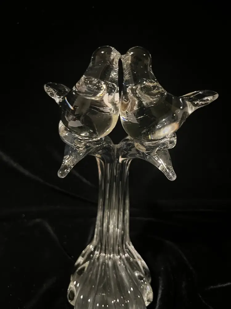 Beautiful glass MCM kissing lovebird sculpture. It’s in beautiful condition.