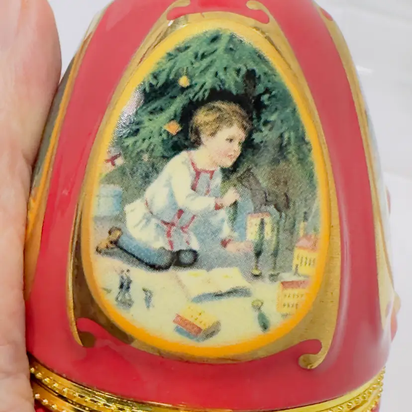 "Boy Under Tree" working, new battery, plays "O little town of Bethlehem" 4.5" Mr Christmas