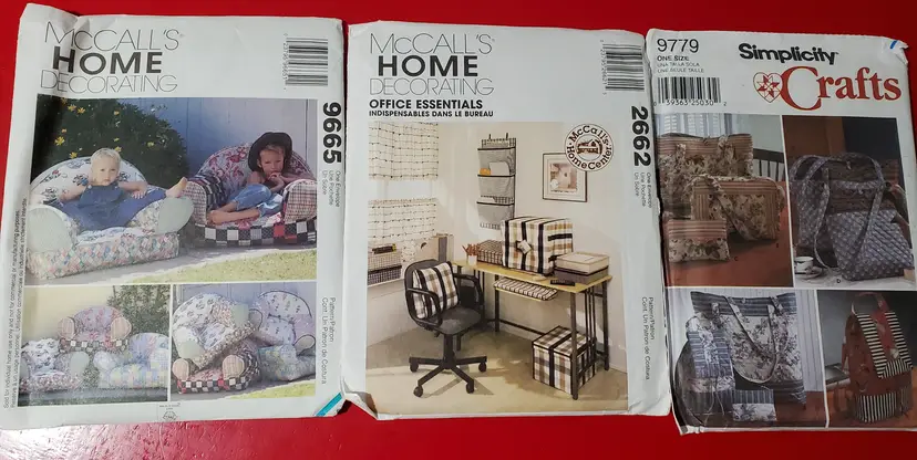 Some of the patterns are for a variety of pillows, slipcover for headboard, bags, throw, and other household items.