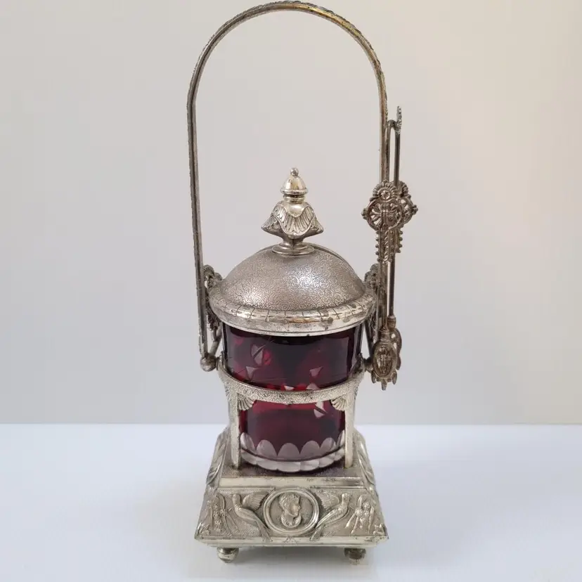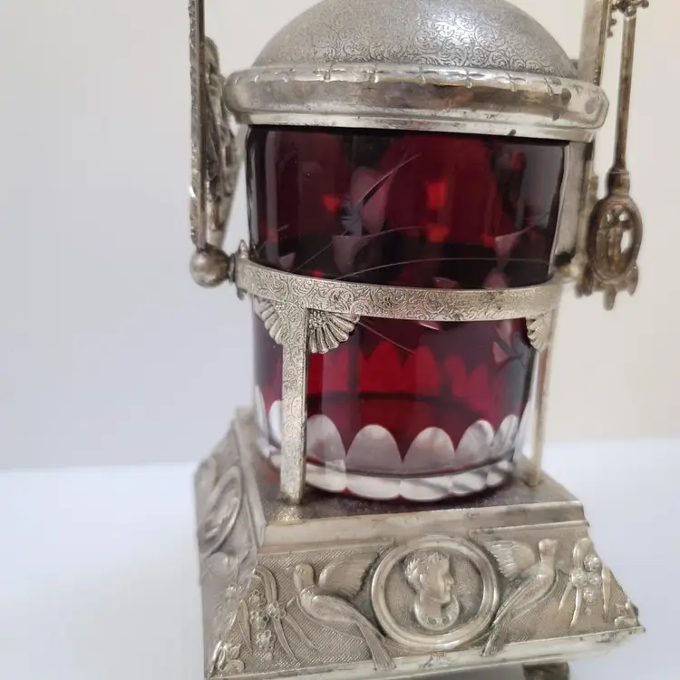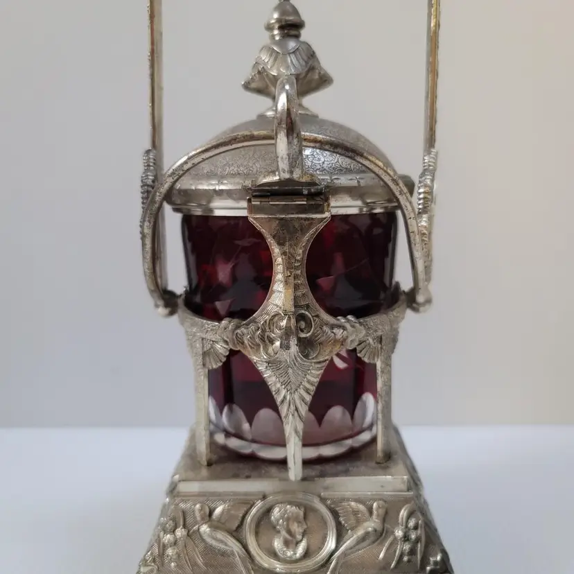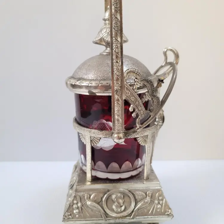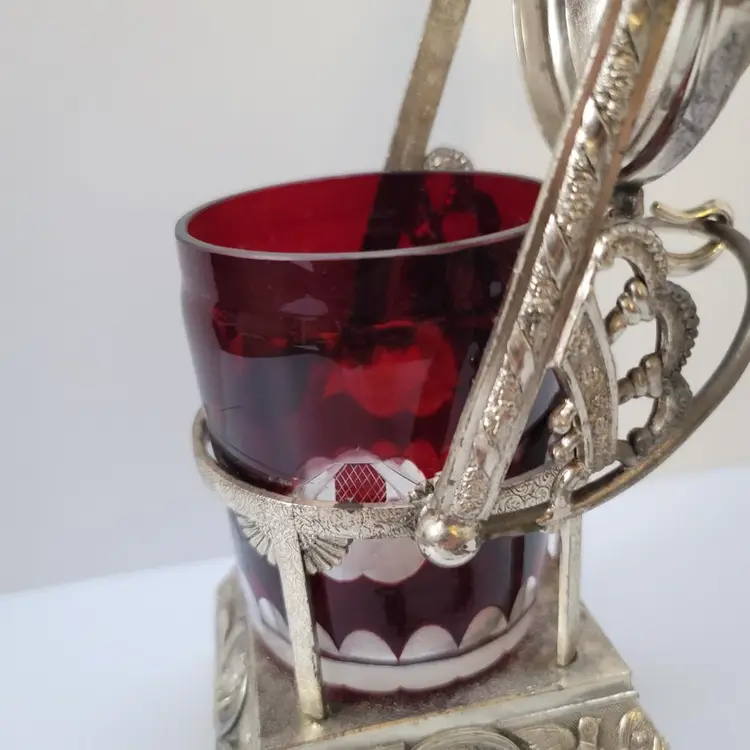 BEAUTIFUL 1800s (Victorian era) Wilcox Silverplate Cranberry cut-to-clear glass insert NO condition issues BEAUTIFUL antique display item 12.5" tall 4" squared base