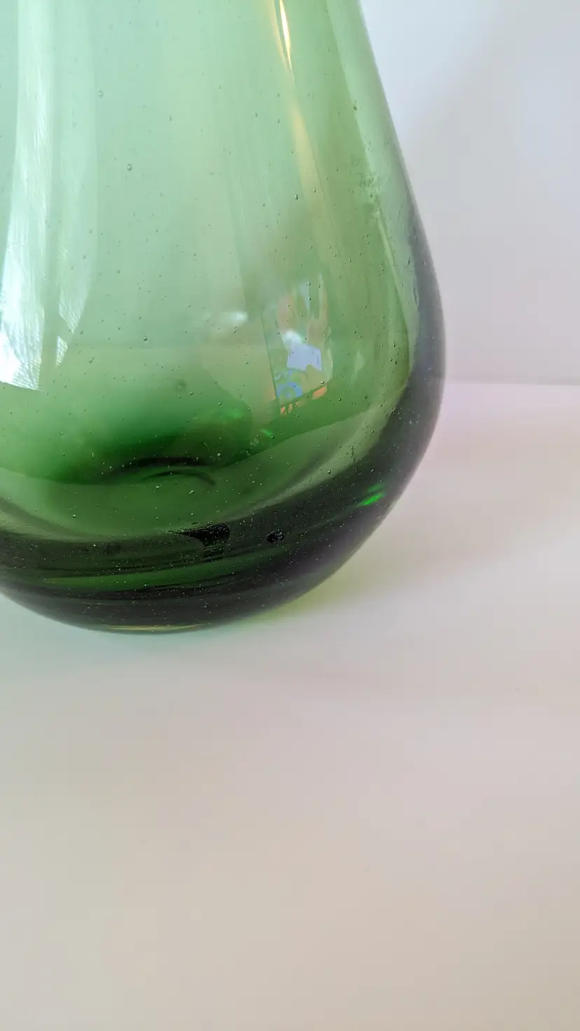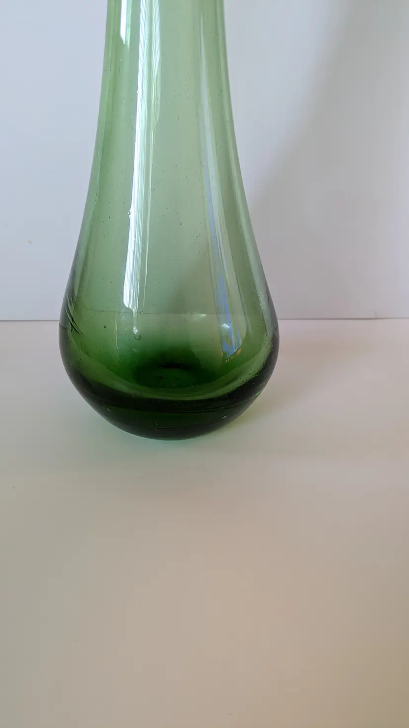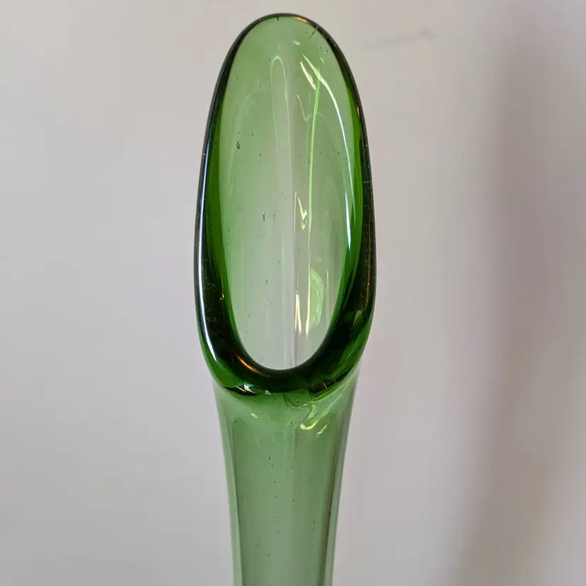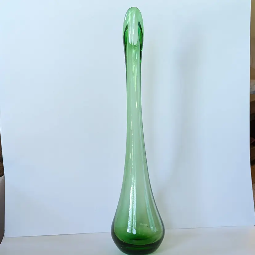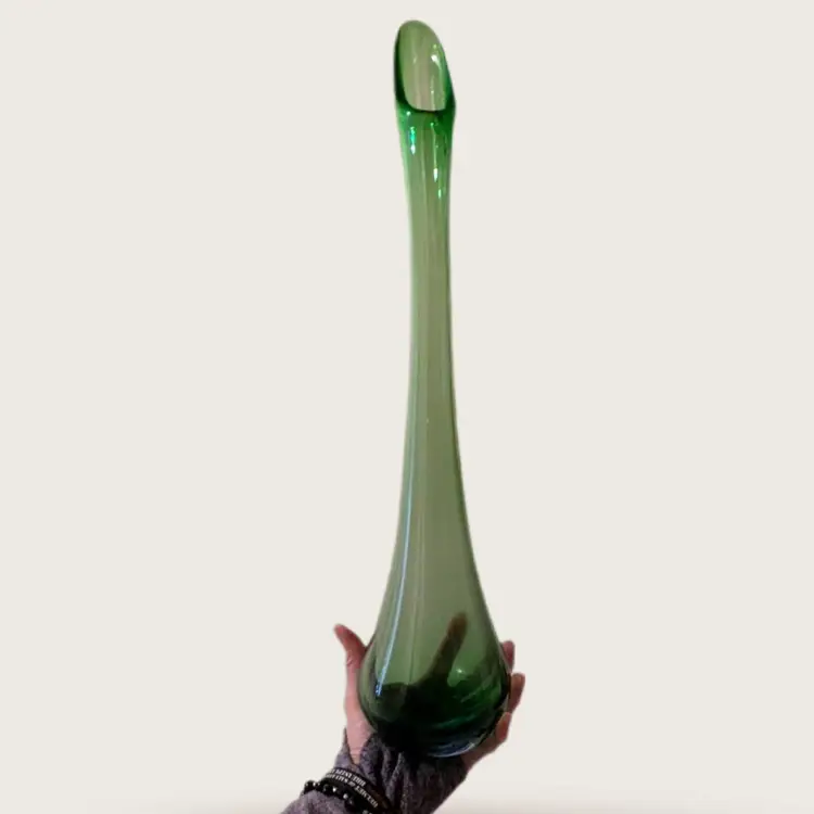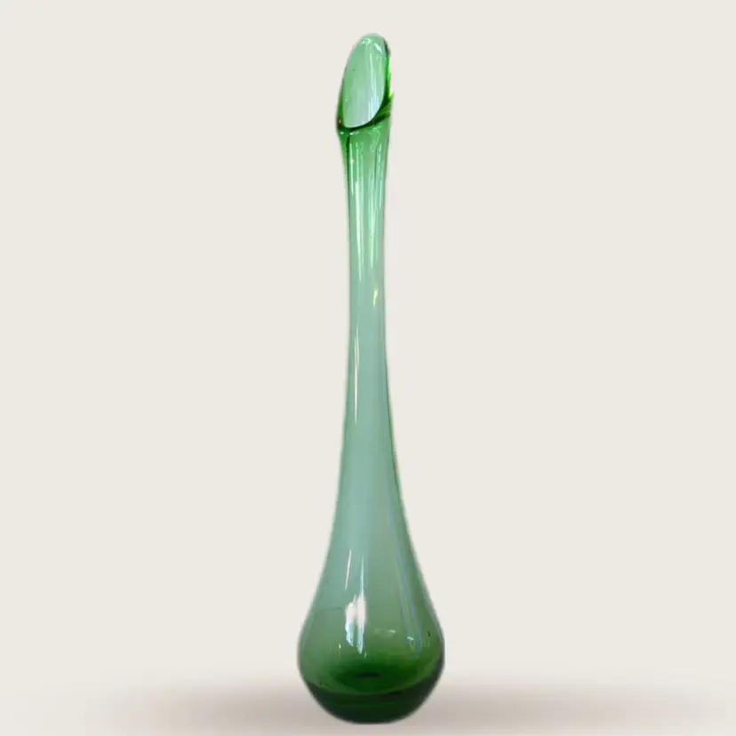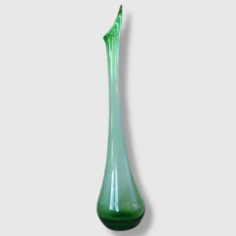 Attributed to LE Smith this beautiful Smoothie Stands 18.1/2" tall x approximately 4.1/2" wide at the widest, no chips or cracks, for accuracy there are a couple manufacture process bubbles and one tiny ash divet, as seen in photos, overall this beauty is in excellent vintage condition circa 1950s, great starting price on this one!