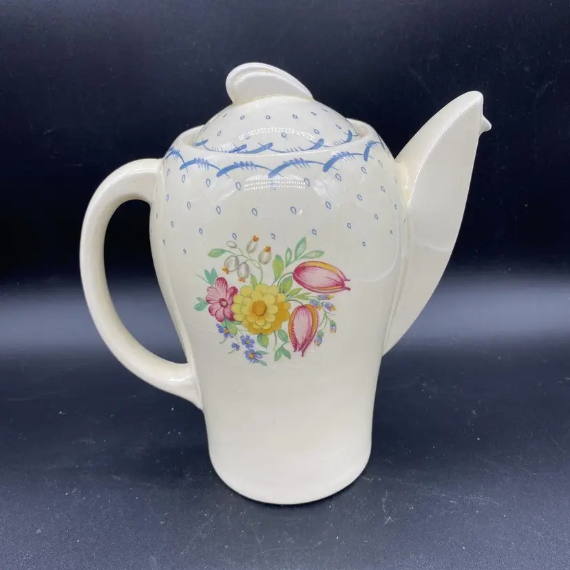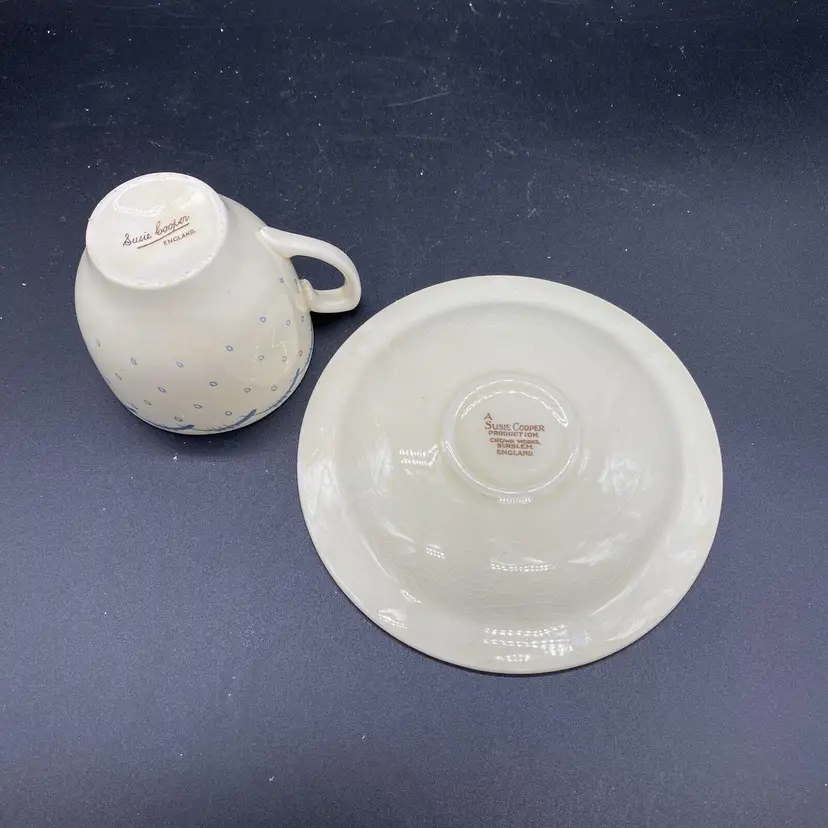 Good with no chips, cracks or repairs has some crazing as most of these pieces do, but nothing that takes away from the pattern or look. Created in 1940s in an era of flowery and whimsical patterns of which Susie Cooper was the most sought after and still is to this day for her iconic patterns. This pattern is predominately featured in the most important books on Susie Copper and 20th Century Ceramic designers. With the important Kestrel coffee pot!