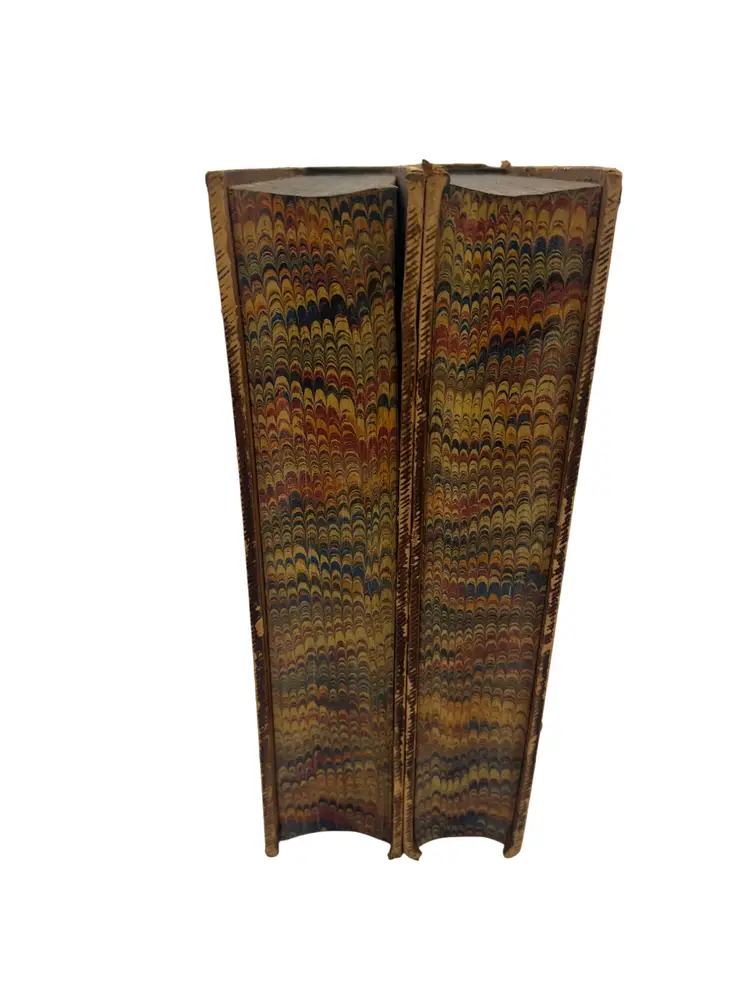 Boards show rubbing and surface loss to the leather; some spine wear; solid, clean interiors with normal age toning. No rips or tears to pages noted See pictures for further details on condition.