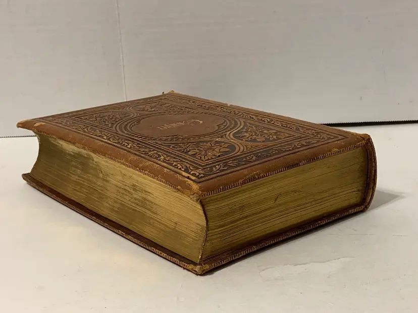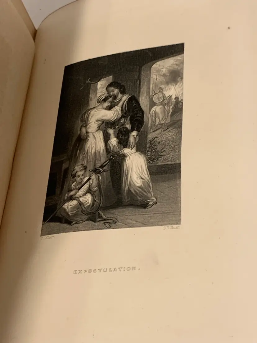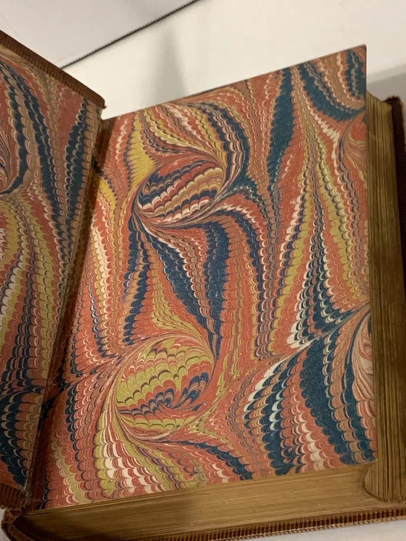 Absolutely gorgeous deluxe decorative edition with high quality embossed leather boards and shiny gold gilt pages. Boards measure 9.75” x 7.25”. The leather has some minor leather wear and damage from being moved in and out of the shelf. Pages are in pristine condition, free from foxing. Several gorgeous illustrated plates throughout.
