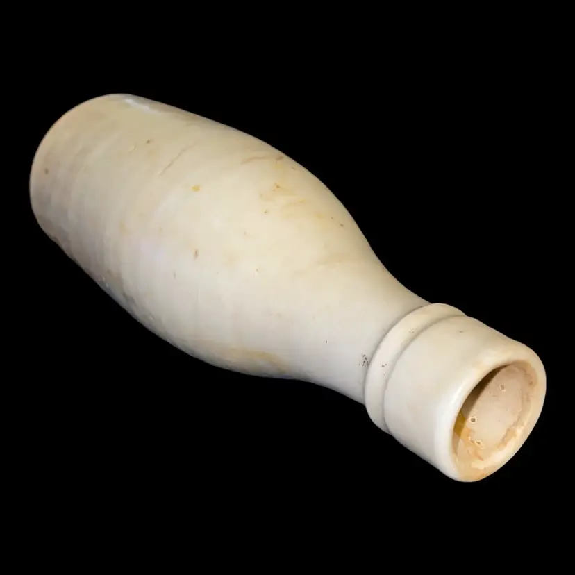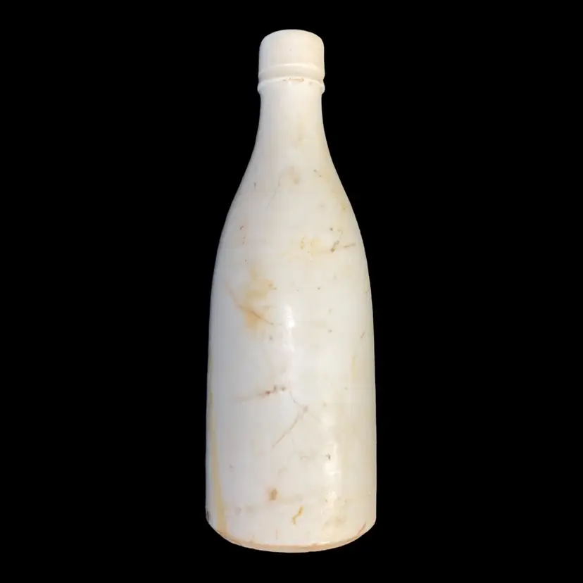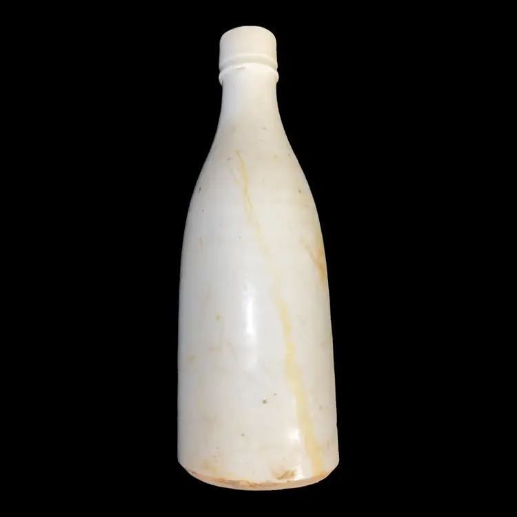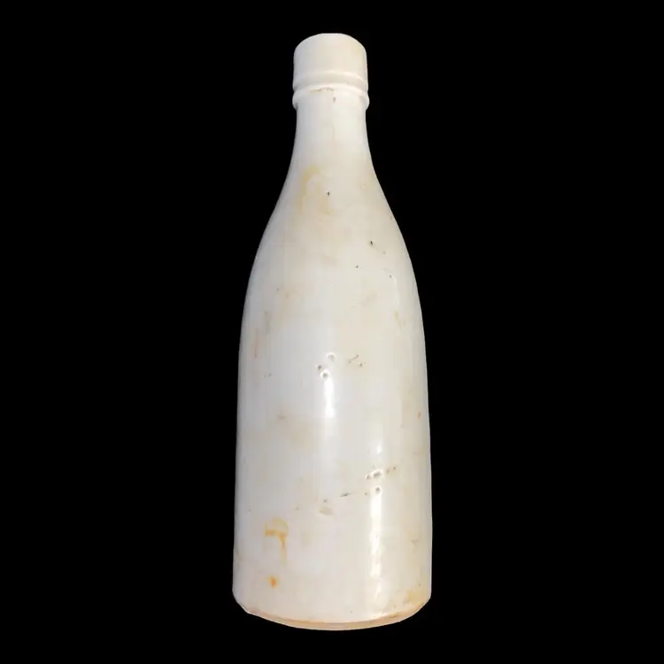 •Ceramic beer bottle from 1860-80s, dug up near known mining settlement areas in Virginia City, Nevada in the late 50s-early 60s. •no stamp on bottle, but many ceramic bottles of this period were imported from England and filled domestically •no chips/cracks, flea bites, etc but does have staining and crazing.