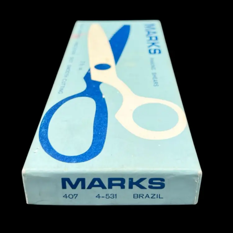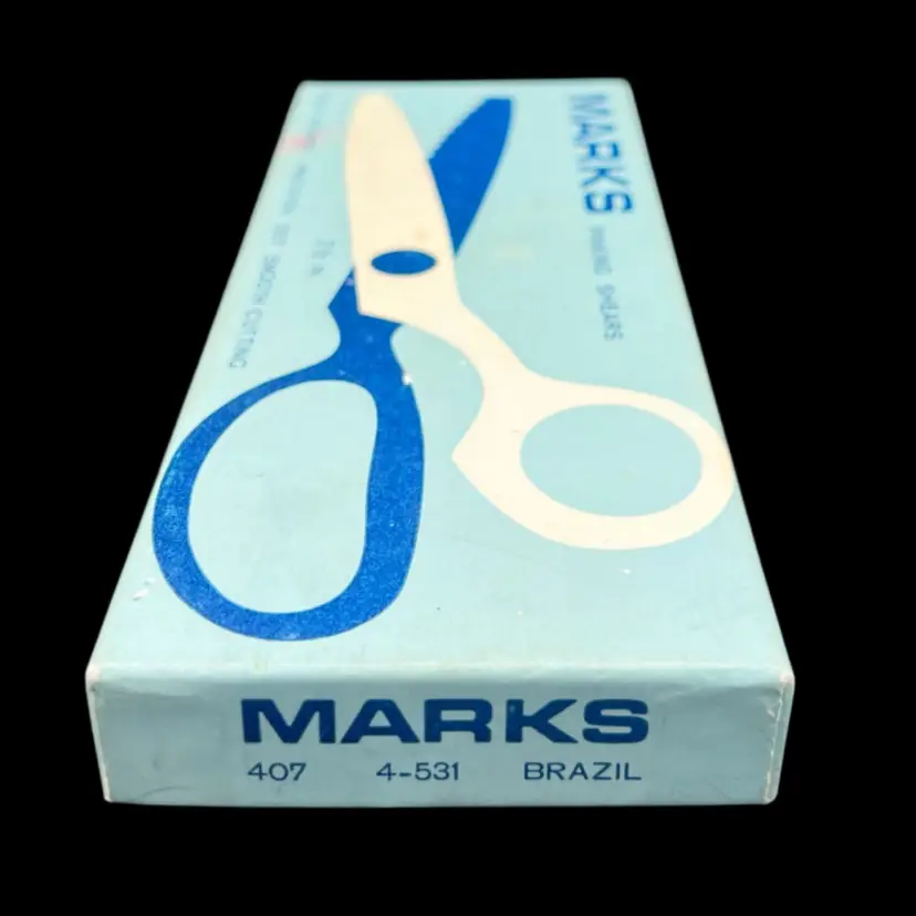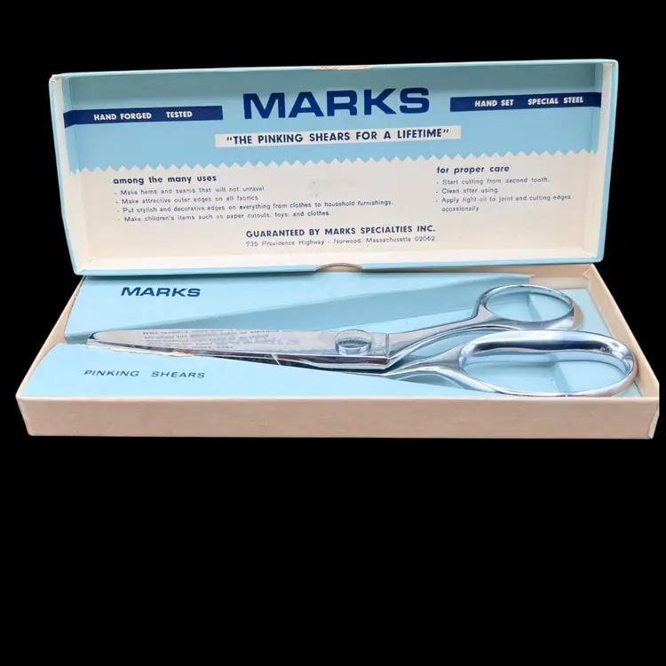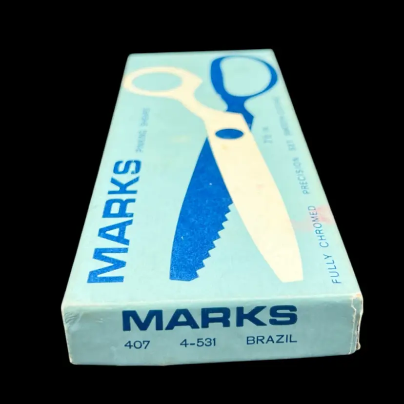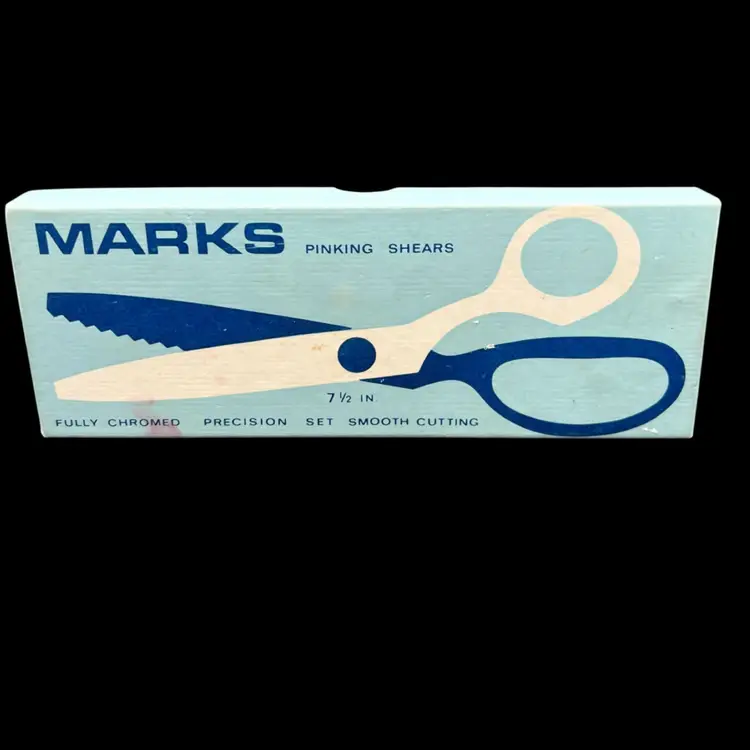 Vintage Marks Brand 7 1/2" Chrome Pinking Shears 407 4-531 Brazil, Right Handed in Original Box Sharp And In Very Good Condition
