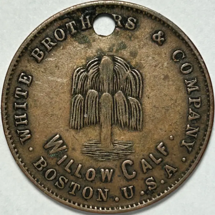 1890’s white brother & co. Willow calf Boston USA good luck token