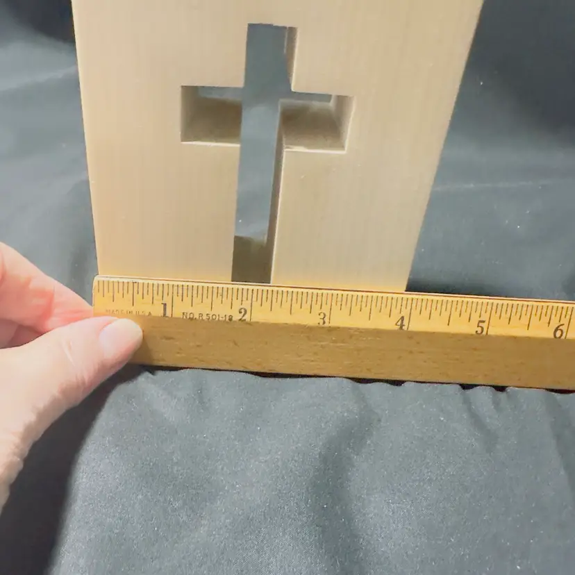 These Crosses are in their natural state, no varnished, I have 5 of them, there is a mark left over from the price dot that was on it, I point it point it out in pictures, can be repainted or varnished and the mark will not be seen