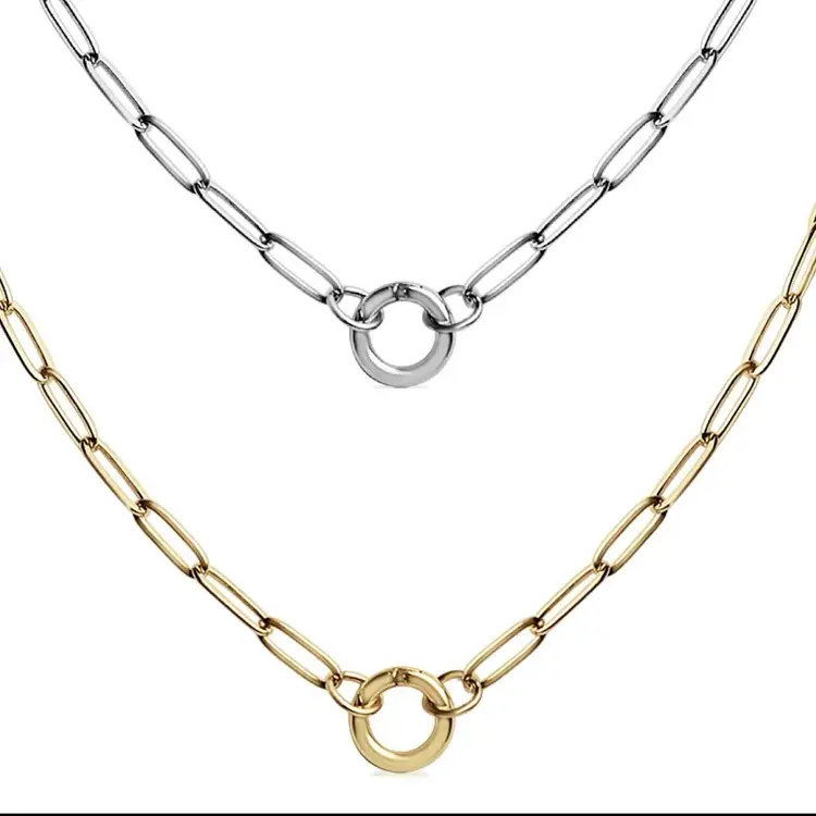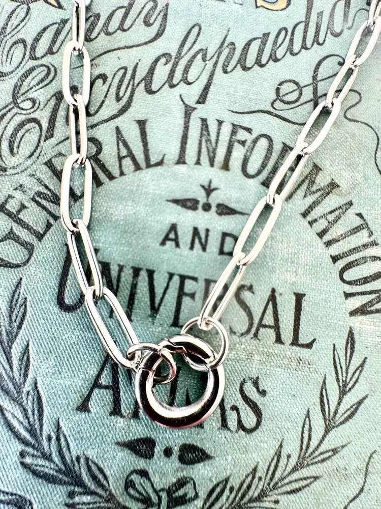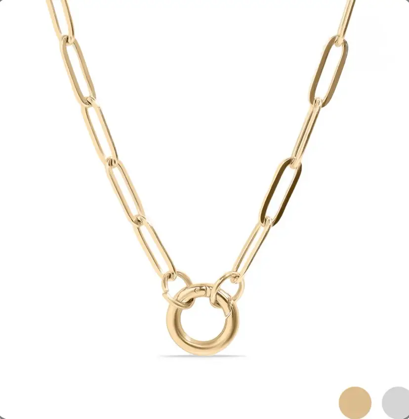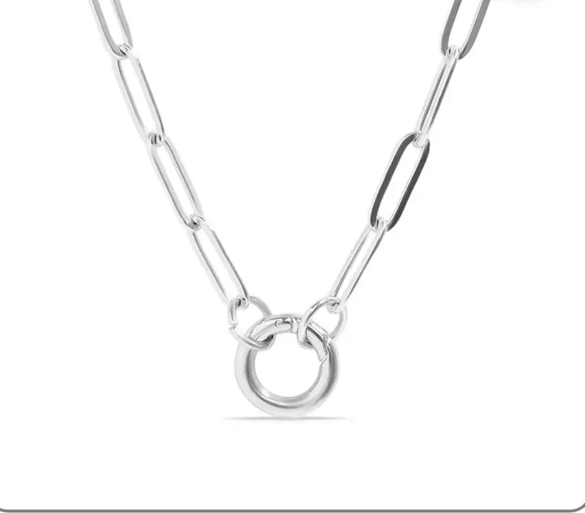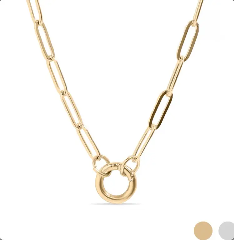 This modern necklace features the trending paper-clip-styled links to form a beautiful and interesting piece with an easy-to-open charm keeper attachment. It's a simple, casual necklace you can wear anywhere and with anything, but the best part? You can add your favorite charms and pendants or even layer them with other delicate chains to create a bold look. Available in gold and silver and 16”,18” and 20 plus 2” extenders •Hypoallergenic Lead and Nickel Free •Non-Tarnish