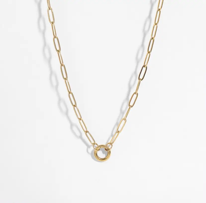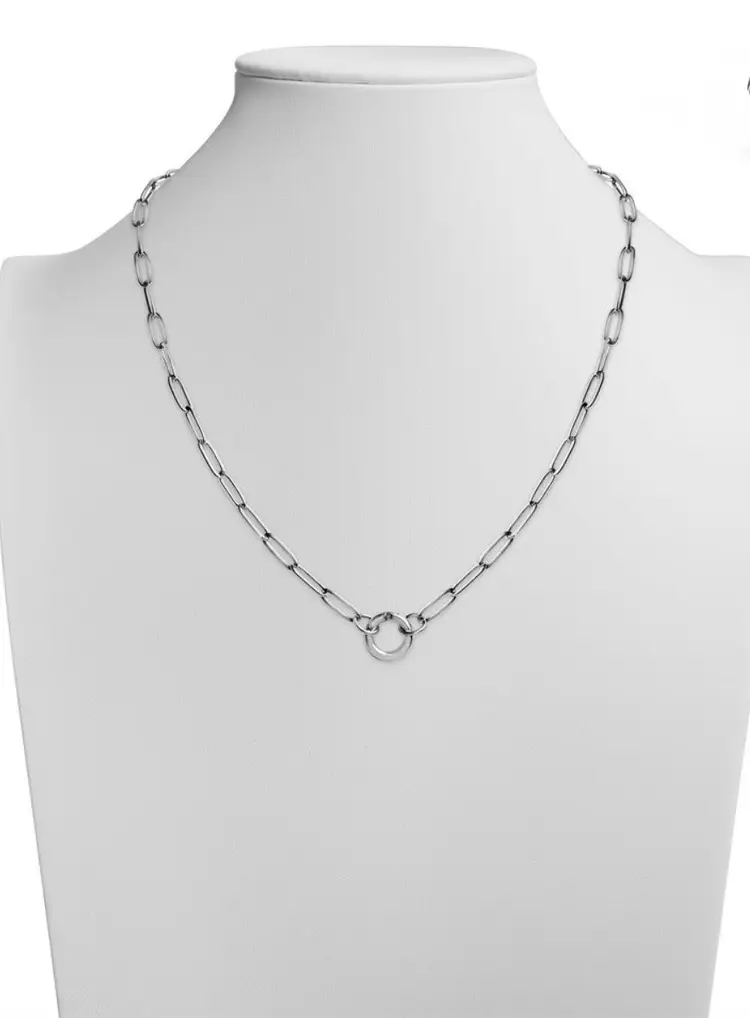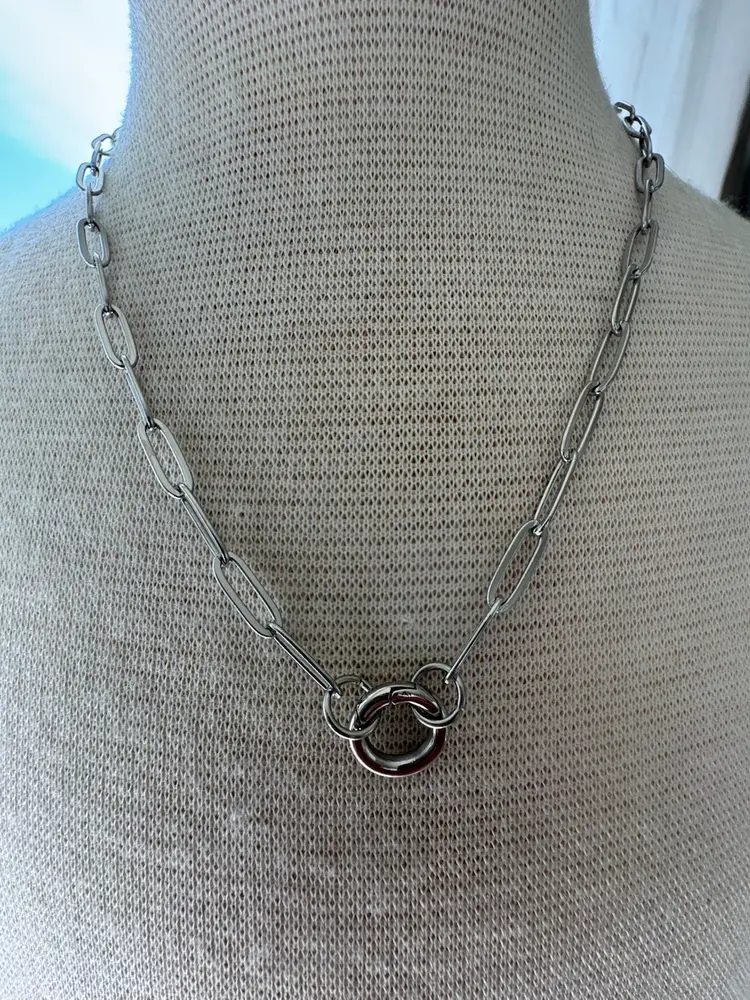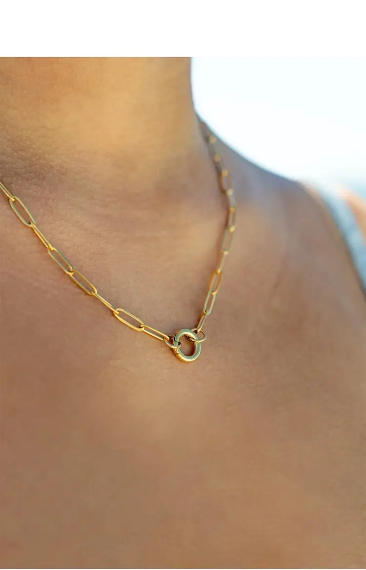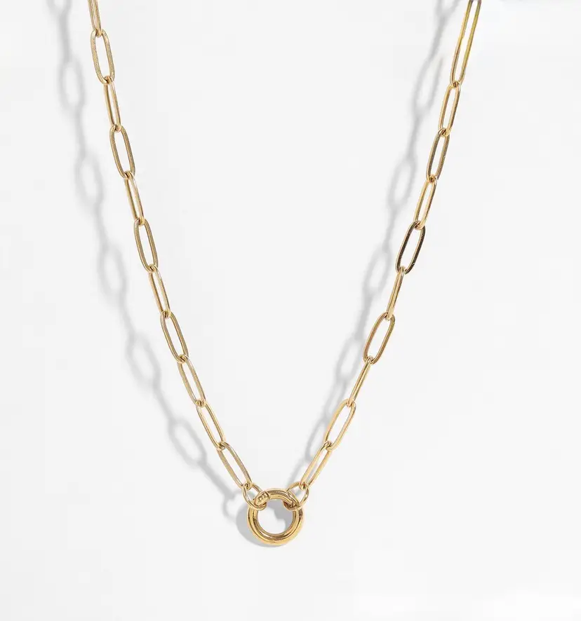 This modern necklace features the trending paper-clip-styled links to form a beautiful and interesting piece with an easy-to-open charm keeper attachment. It's a simple, casual necklace you can wear anywhere and with anything, but the best part? You can add your favorite charms and pendants or even layer them with other delicate chains to create a bold look. Available in gold and silver and 16”,18” and 20 plus 2” extenders •Hypoallergenic Lead and Nickel Free •Non-Tarnish
