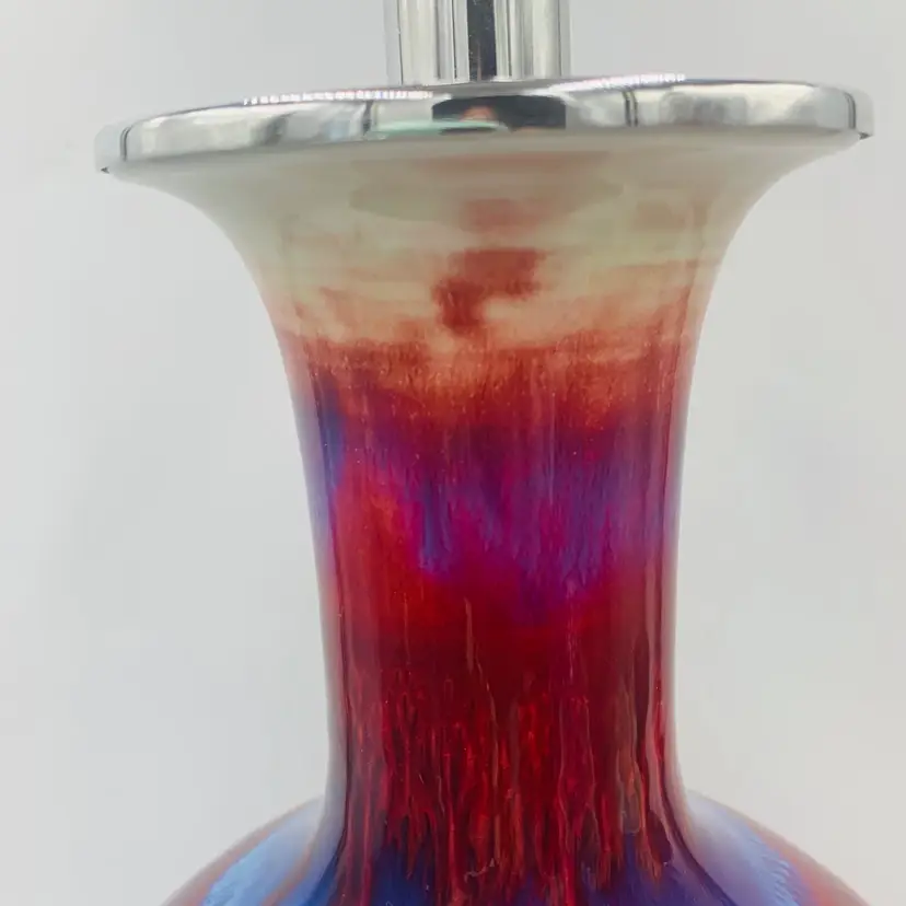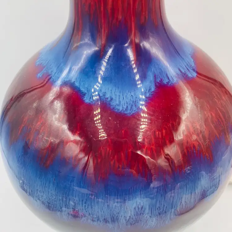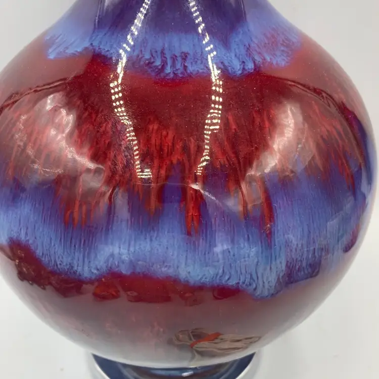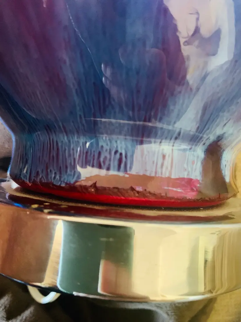 No damage. There is some roughness around the bottom rim right before it is attached to the base. Roughness goes all the way around