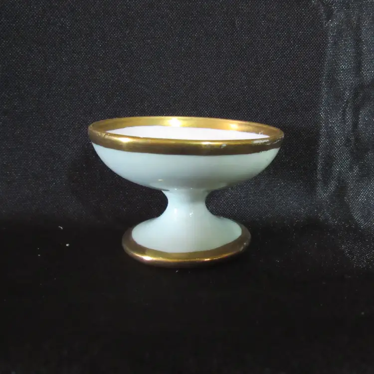 This porcelain salt is approx. 1 1/2"" tall x 1 5/8" & 2 1/8" across. Beautiful hand painted flowers and gold trim. Marked Noritake. Made in Japan. It is in excellent condition with no chips, cracks or breaks. Minor wear to the gold.