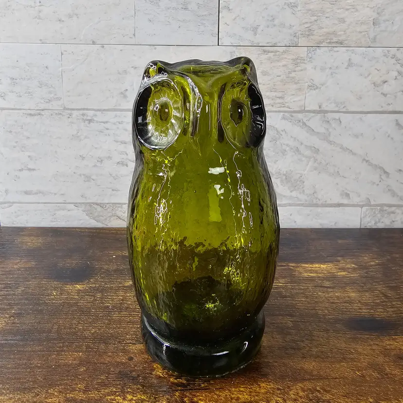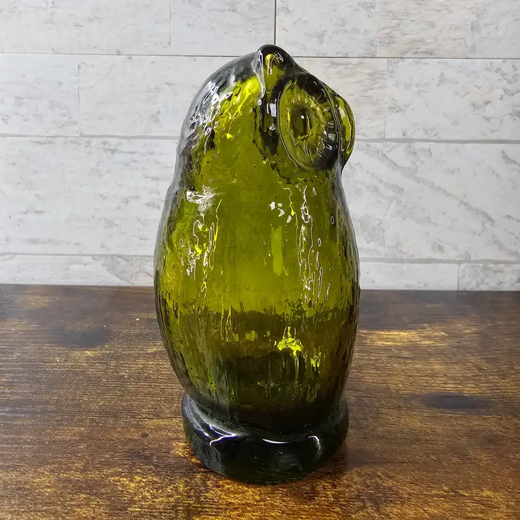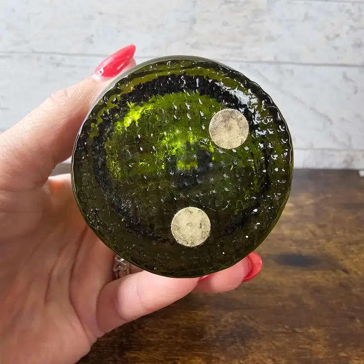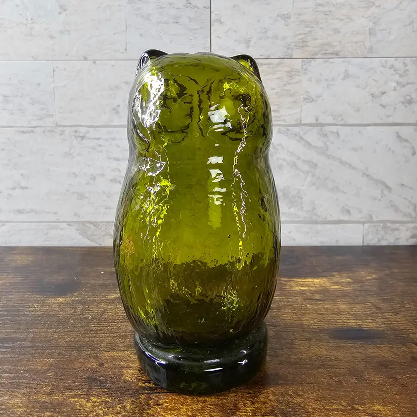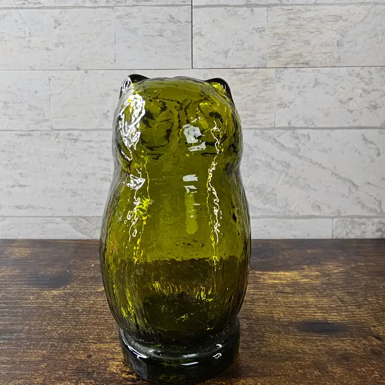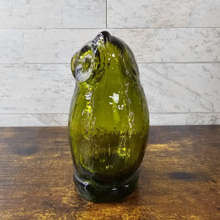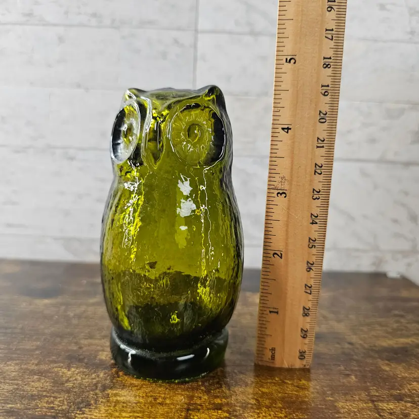 4.5" tall. Beautiful green glass with intricate details. Perfect condition. No flaws.
