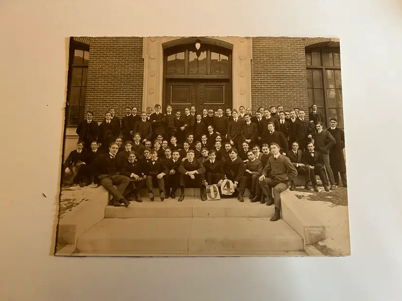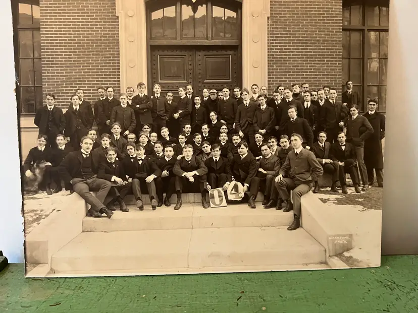 Great old photo on backer board. c. 1904 A graduation or class photo. 13" x 10.25" Edges are rough cut