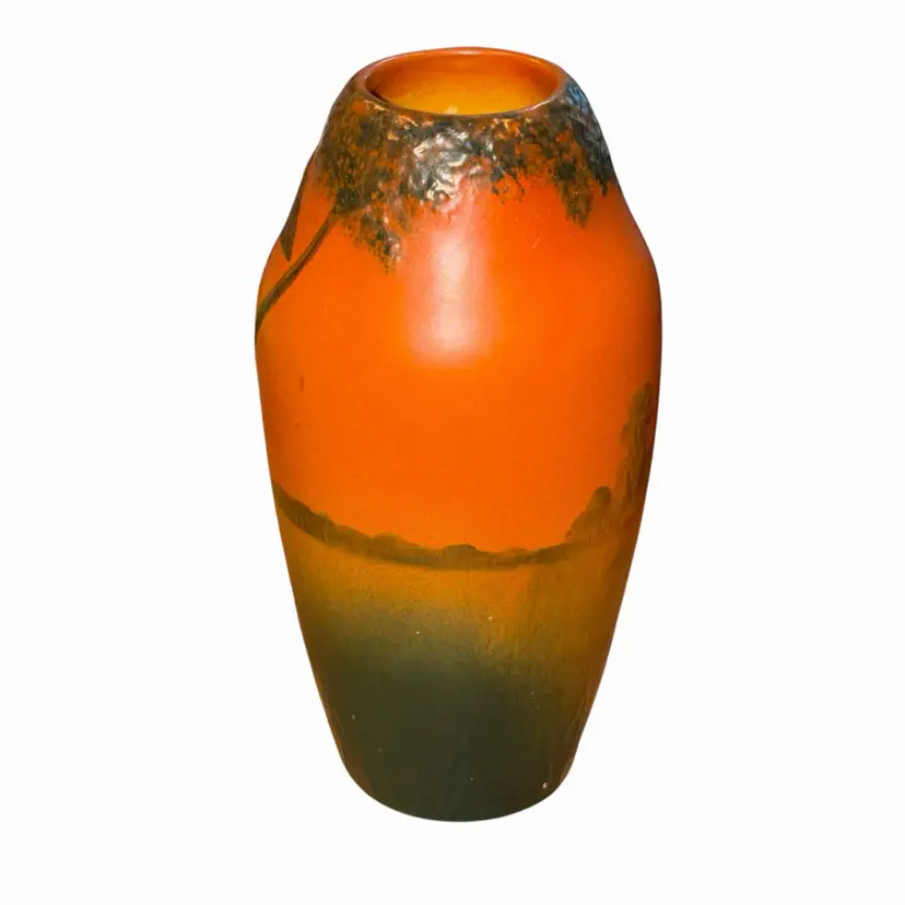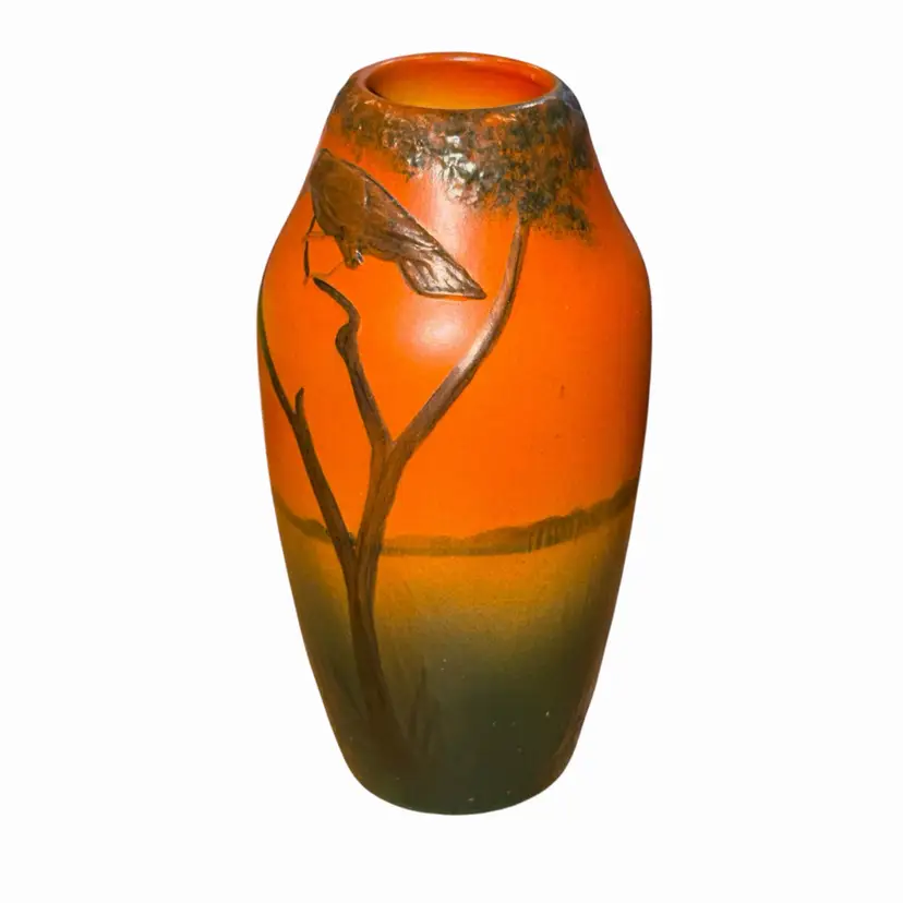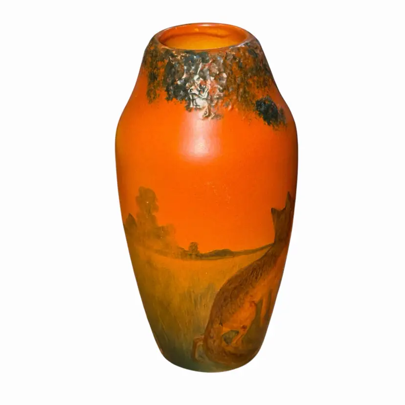 Rare 1920’s Danish Art Nouveau hand-painted vase featuring the classic Fox and Crow motif inspired by Aesop’s Fables.