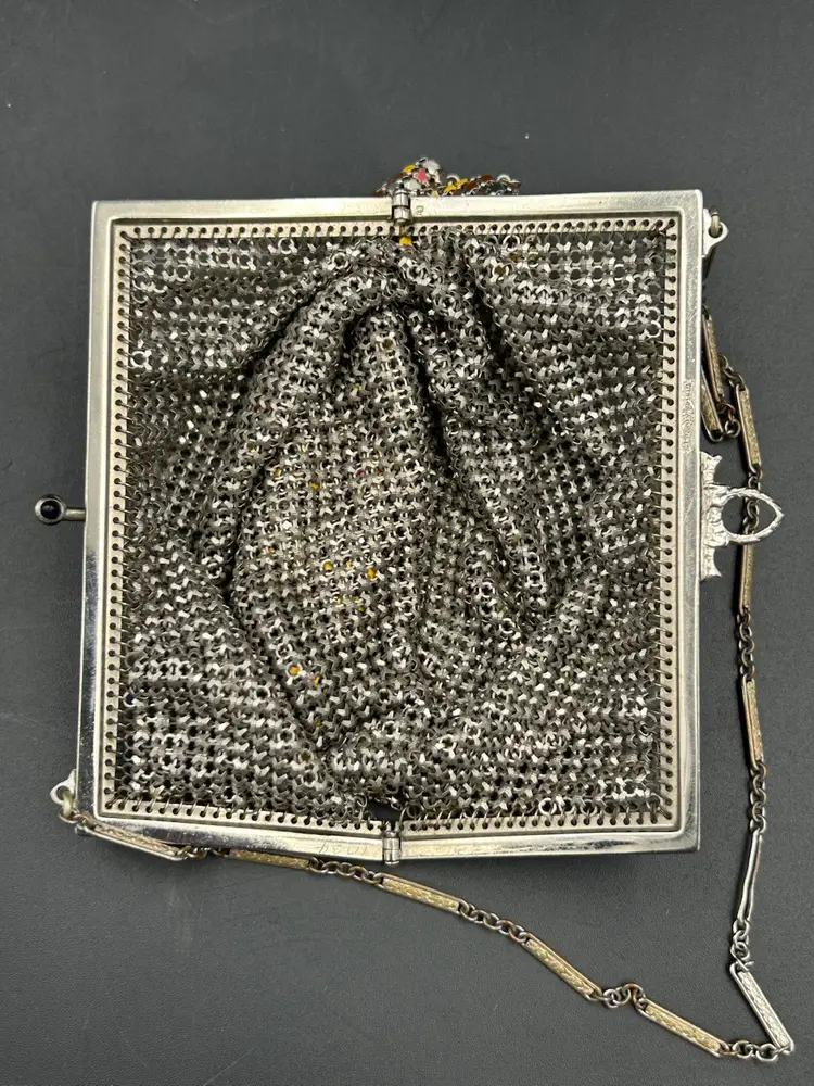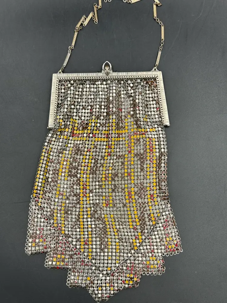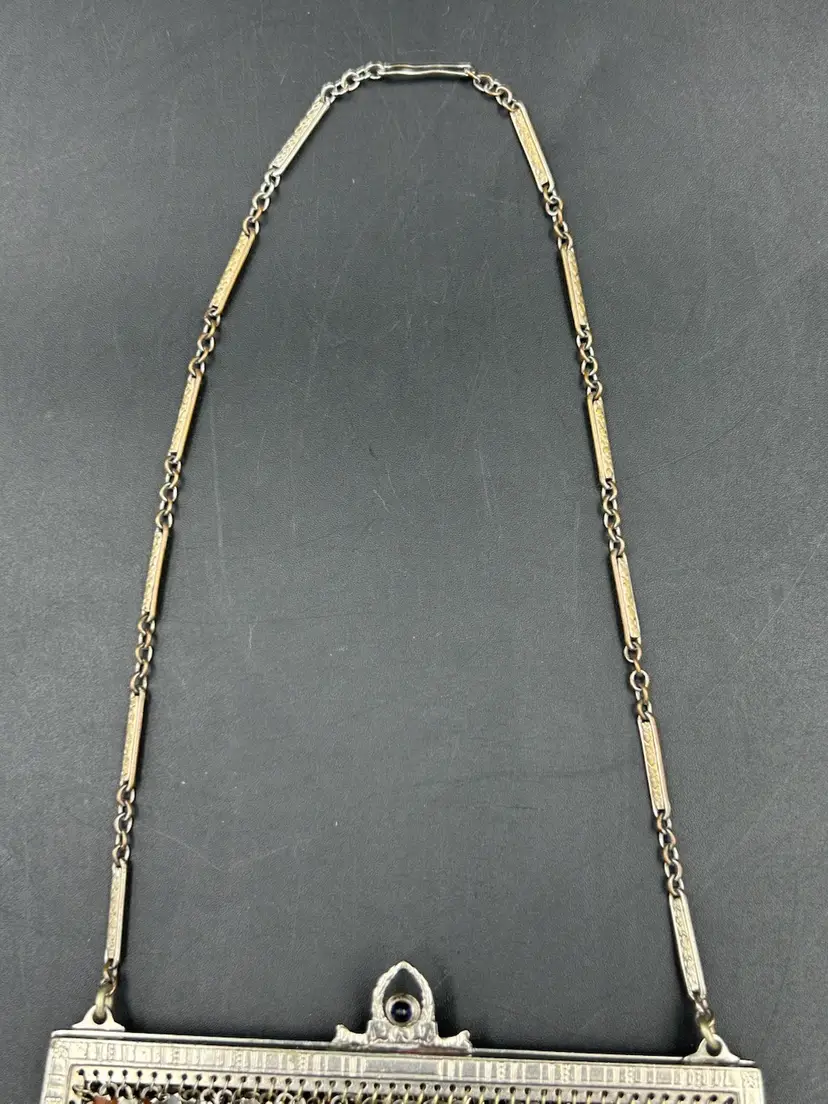 Vintage age related paint wear, frame and clasp closure perfect. 7.5 L.X 5W.6” drop on link chain