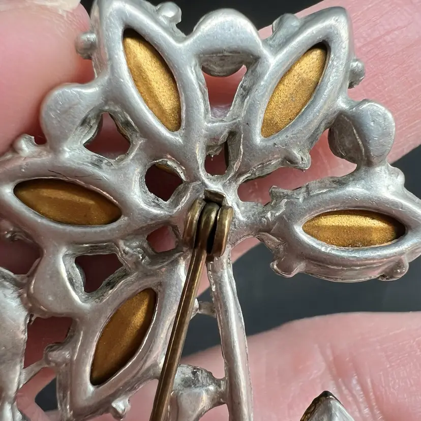 Condition - Good- General Overall Wear - slightly bent pin - missing 2 small clear rhinestones