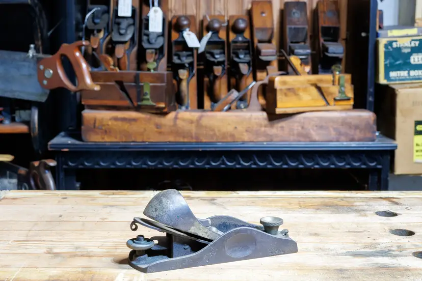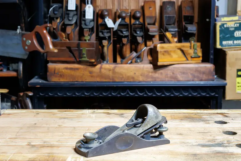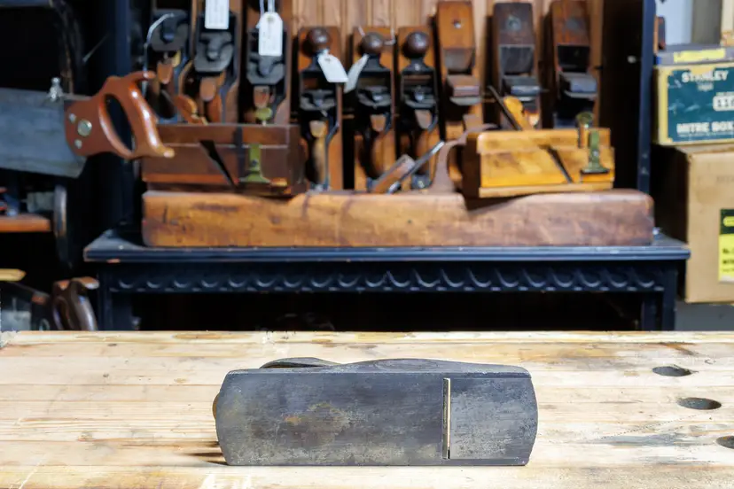 A Fair 1930's adjustable block plane by Craftsman (made by Sargent). It has some pitting on one side of the body, but no damage. It will need cleaned, oiled, and sharpened for use. The cutter has the unique lateral adjuster attached to it, which works perfectly. Depth and mouth are also fully adjustable. 6.5" long with a 1-5/8" wide cutter.