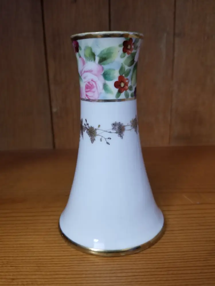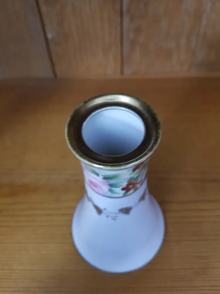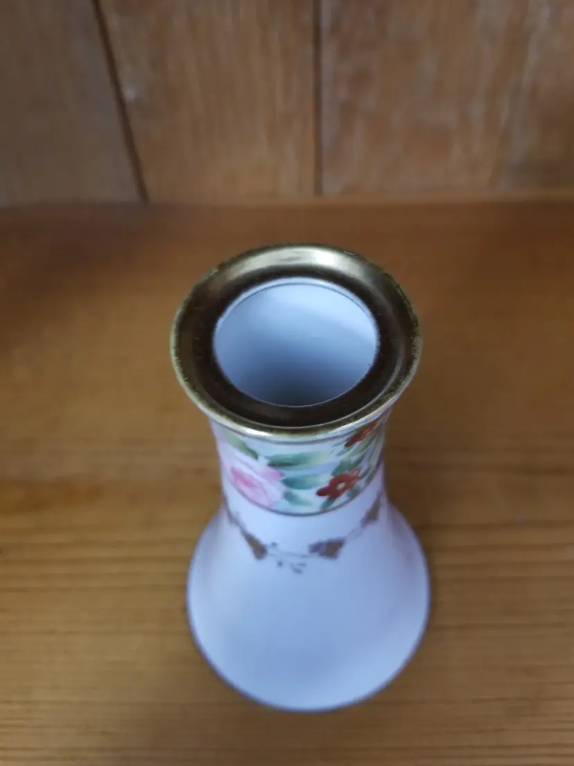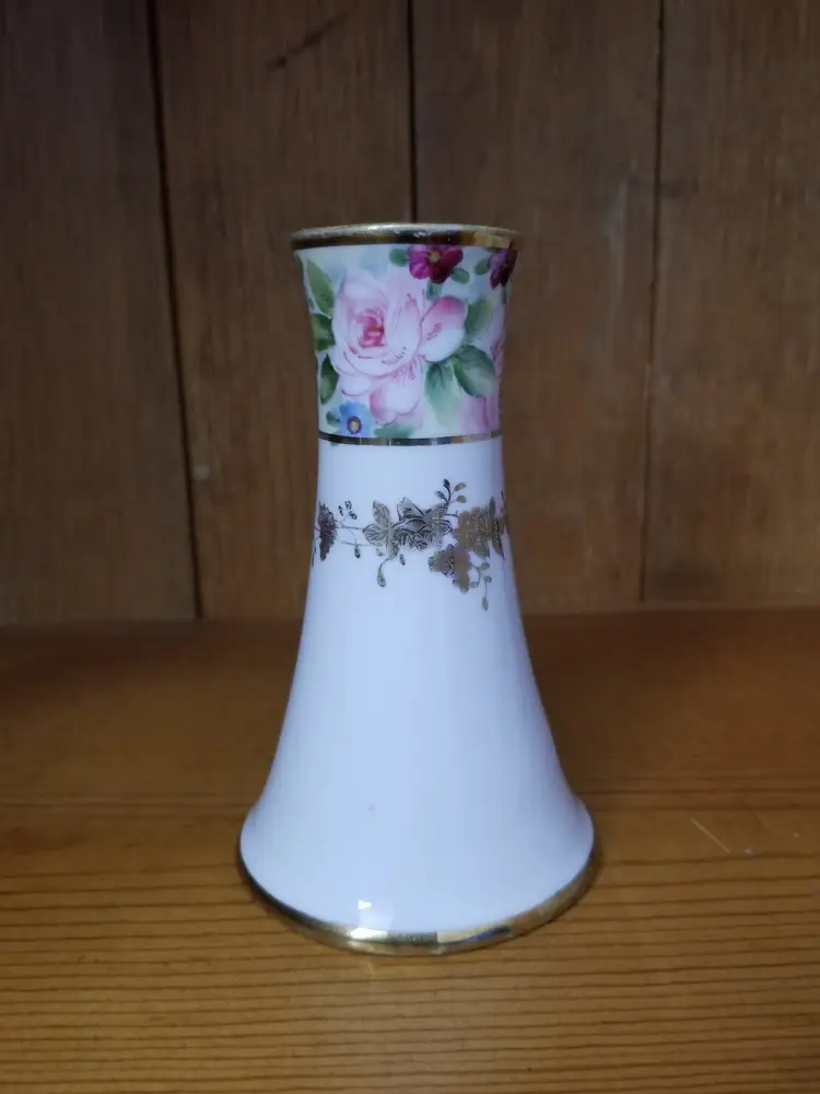 This 1930's Nippon Porcelain Hatpin Holder is a charming vintage decor item, standing 4 ¾" tall and in excellent condition with no chips, cracks, or repairs. It features a vibrant floral design with pink roses and smaller red, blue, and purple flowers, surrounded by an intricate gold transfer and trim. The hatpin holder is a high-quality, authentic piece from Japan's Art Deco period, showcasing the era's fine craftsmanship and rich color palette. The hand-painted floral motifs add a soft, feminine touch, making it an ideal gift or decorative accent for any dresser, vanity, or hat stand. The sturdy construction ensures both functionality and longevity, allowing it to be a cherished piece for years to come. Please view the pictures and feel free to ask questions. Thank you for visiting my shop.