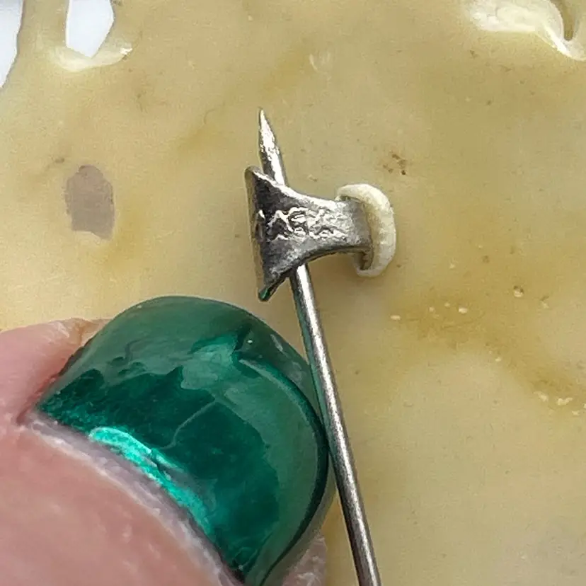 Very good vintage condition with age-appropriate patina. No cracks or repairs noted. Pin functions properly.