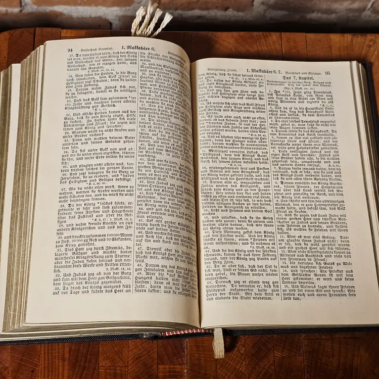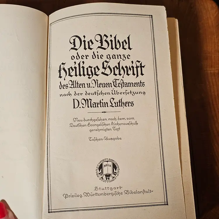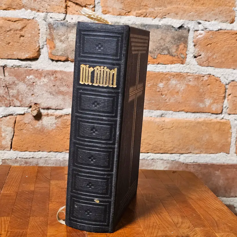 Vintage German-language Bible titled Die Bibel oder die ganze Heilige Schrift translated by Martin Luther. Published in Stuttgart by Privileg. Württembergische Bibelanstalt.