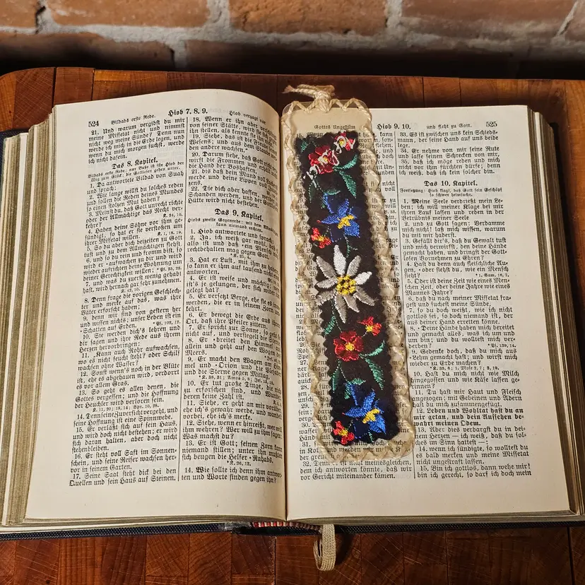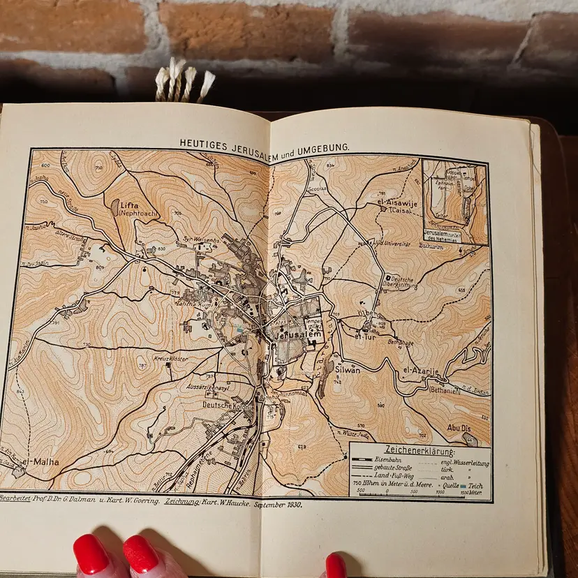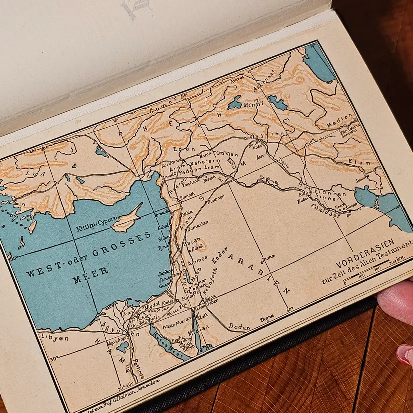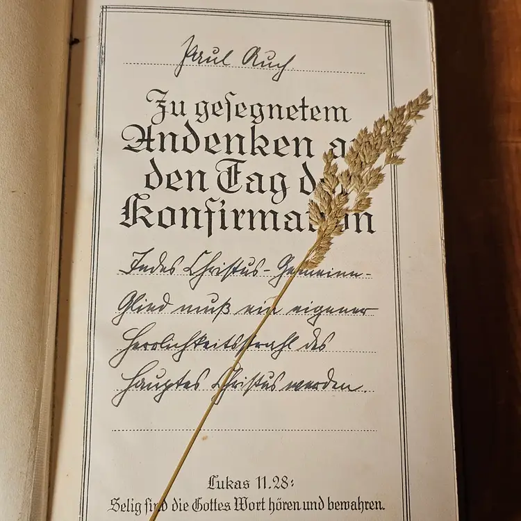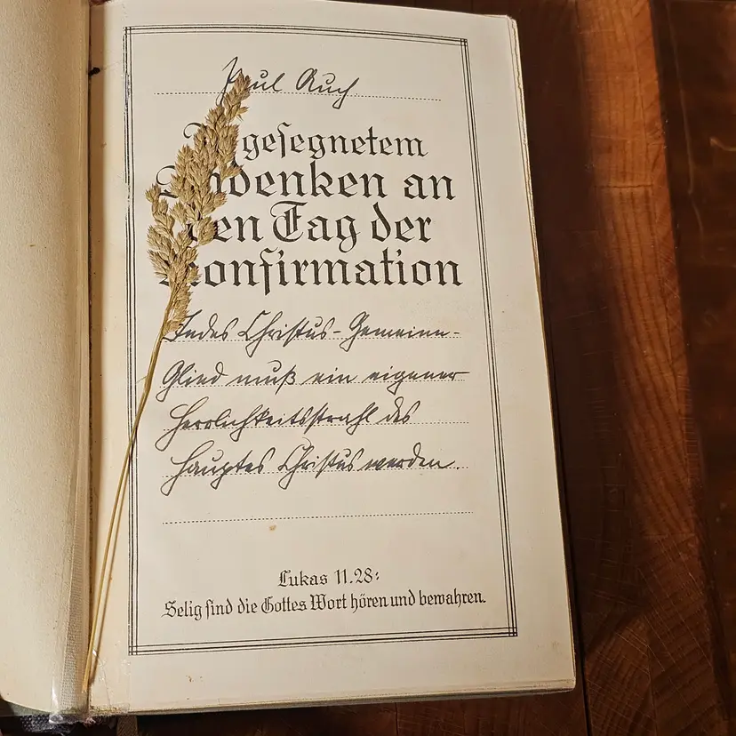Features a beautiful black hardcover with embossed cross and gold lettering. Includes a personalized confirmation page (dated 1932) and printed maps in the back.