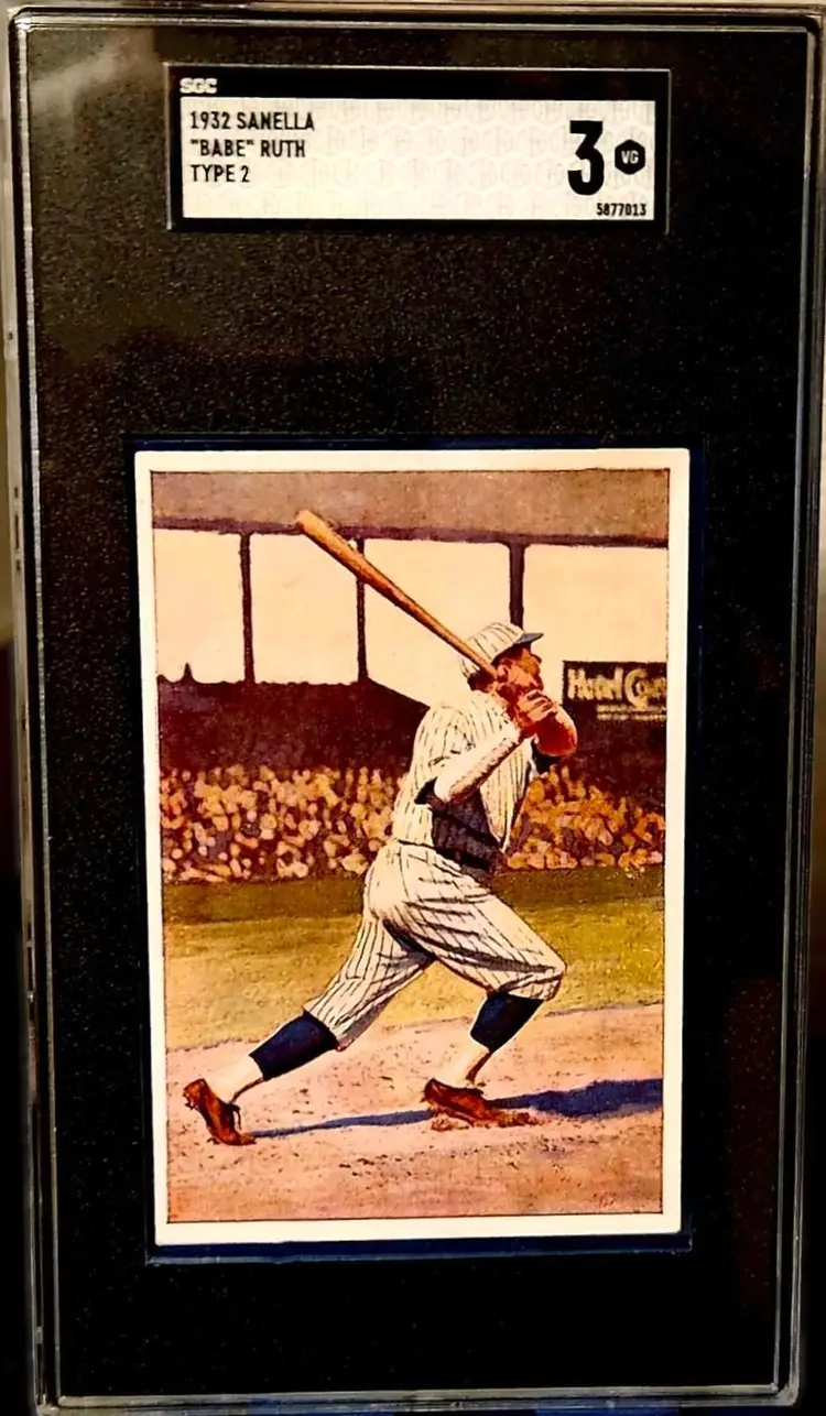 A 1932 Sanella Margarine Babe Ruth (Type 2), graded SGC 3 (VG).