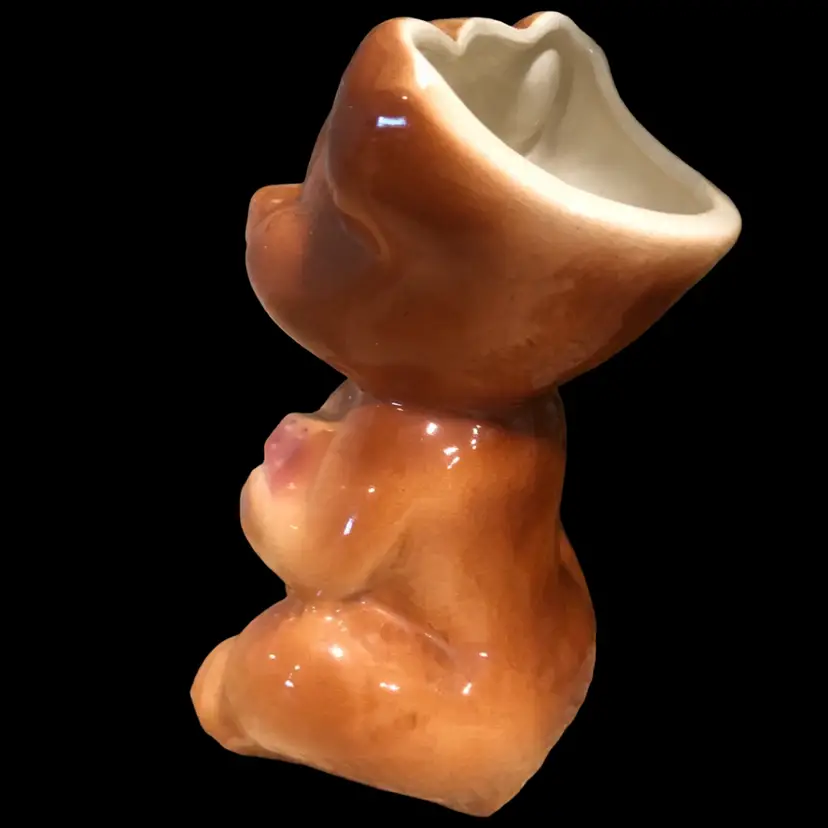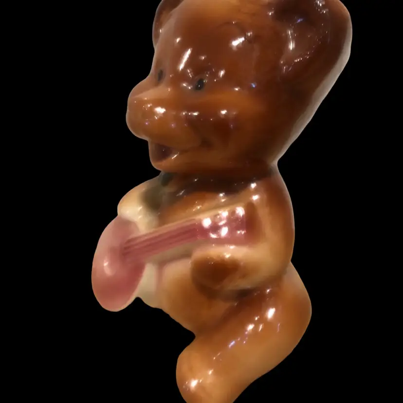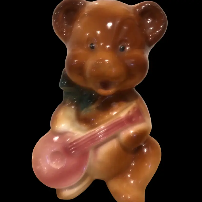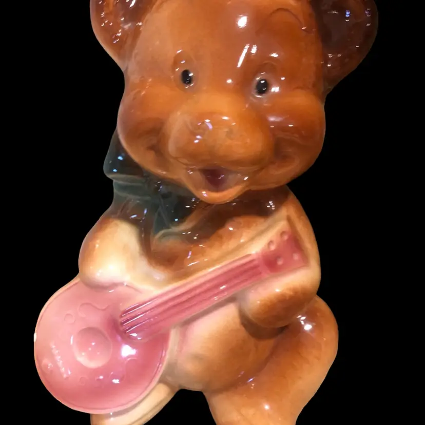 This adorable vintage ceramic planter is ready for your plant starters! At 80 years old, it is in amazing condition. There are only two very very tiny chips (one on the mandolin and the other on the back side of one of the ears of the bear..please see photos.) His glaze is lovey and very vibrant with no crazing.