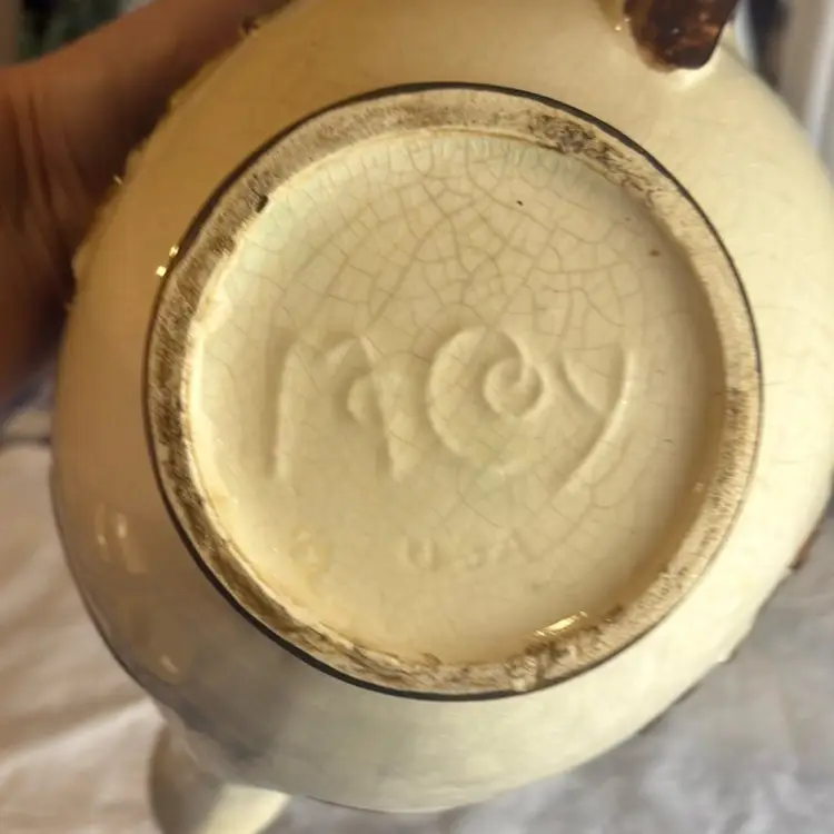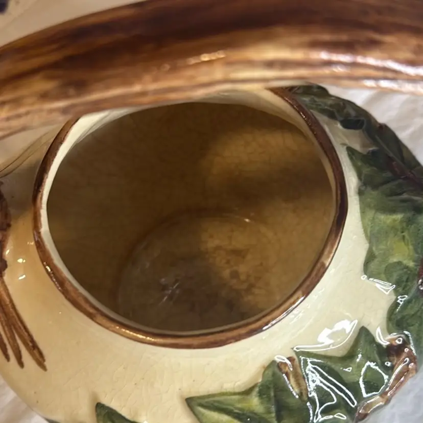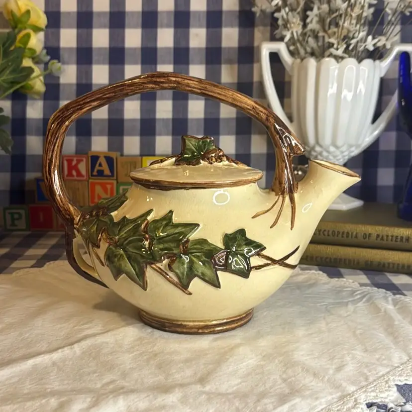 1940s McCoy Raised Ivy Design Teapot with Lid & Tree Branch Handle.
