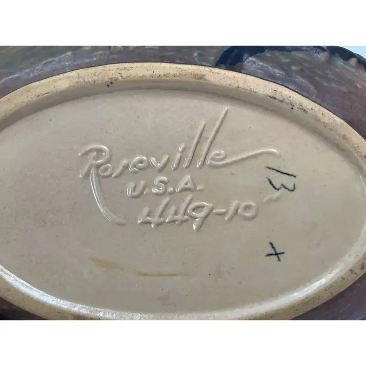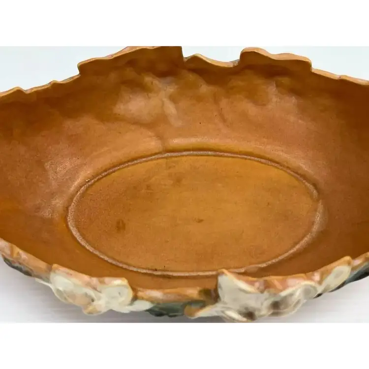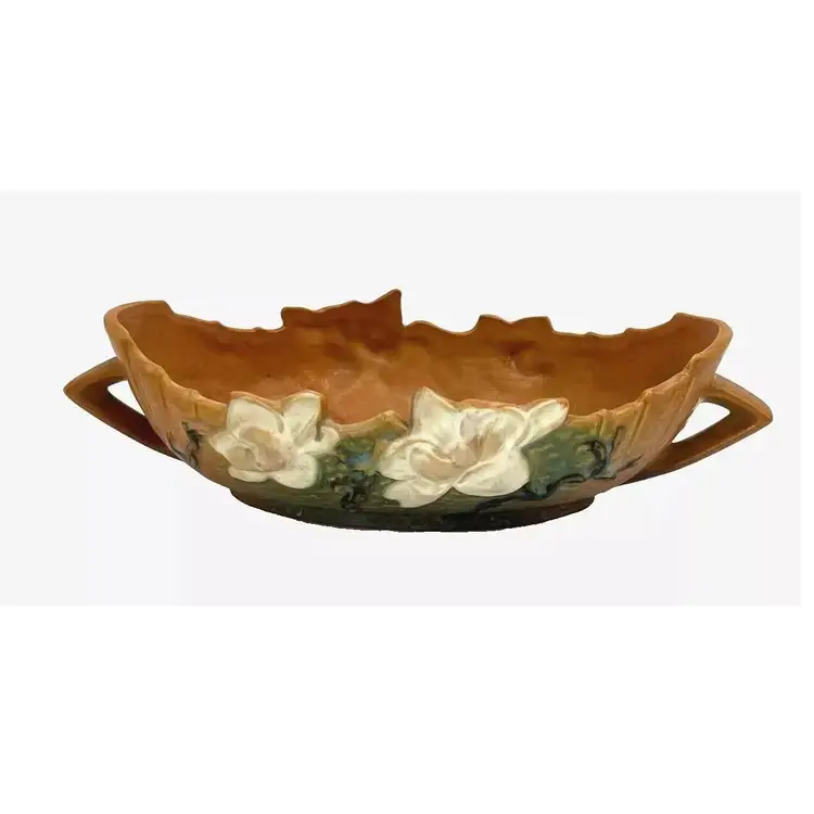 Vintage ceramic planter/bowl with handles by Roseville pottery in the Magnolia pattern dating back to 1940s ( #449-10).