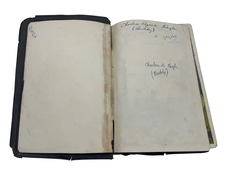 The cover has quite a bit of wear. Some separation of the pages from the binding primarily on the first few pages in the front and back. There is writing on the various inscription pages. See pictures for further details on condition.