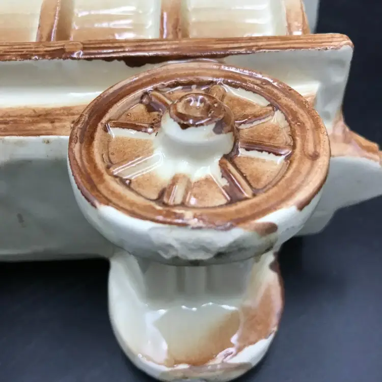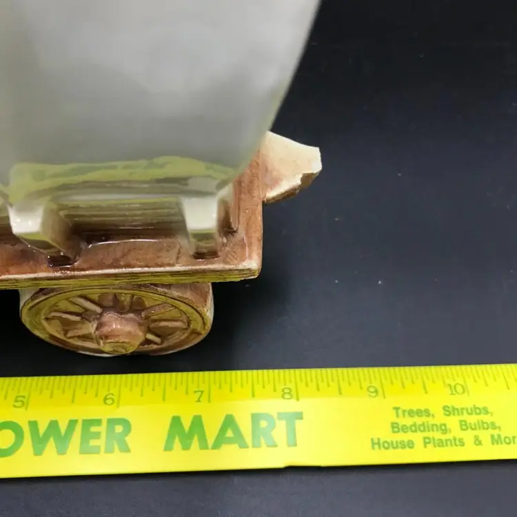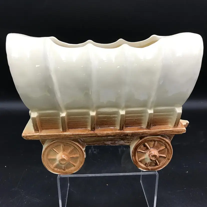 Vintage Mid Century Covered Wagon Planter. CHIPS on Wheel and Tongue (as shown in photos) Approximately 6.25" x 5.25" x 2.25". Pre Owned Condition