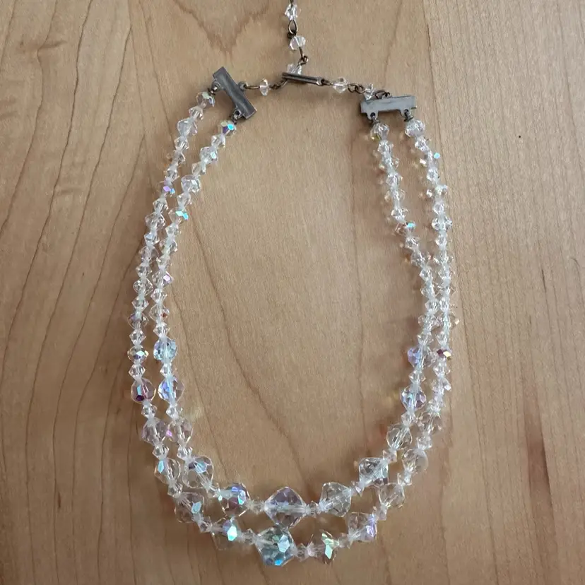 1950s “Crystal” double strand choker Aurora Borealis necklace.