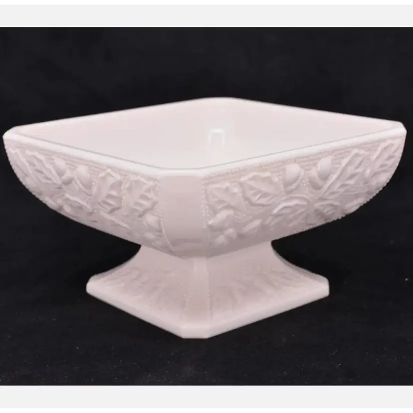 1950s Jeannette Pink Milk Glass Footed Candy Dish Acorn/Oak Leaf • Vtg 5.25"