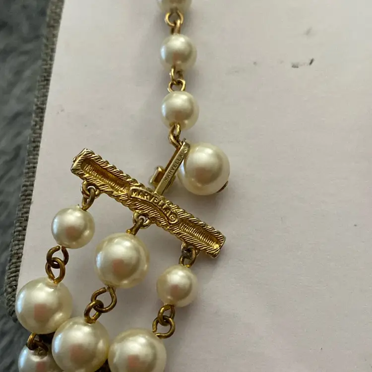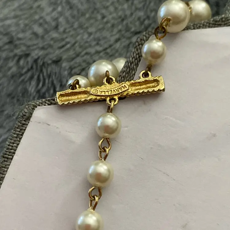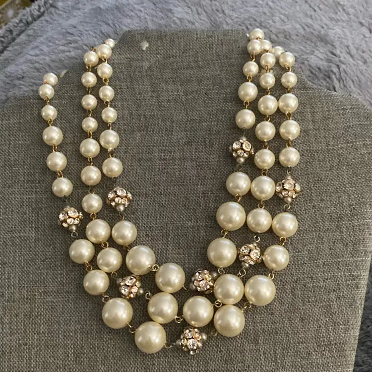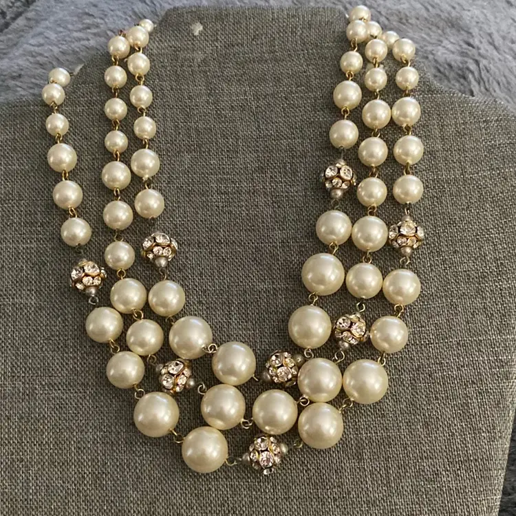 Marvella quality made all metal attachments no string . Beautiful descending Faux Pearls & Rhinestone Balls . Looks brand new never worn.
