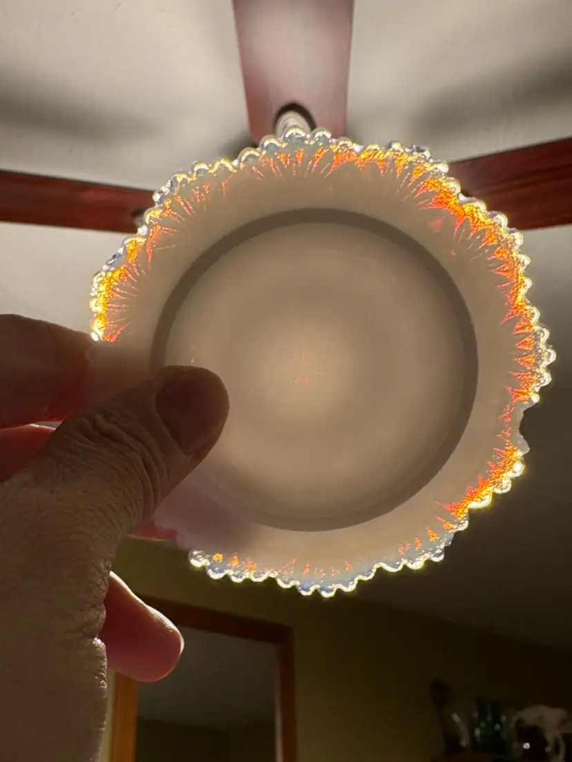 3.75” pat, “Old Quilt” pattern, has chip(see pics), has a ring of fire