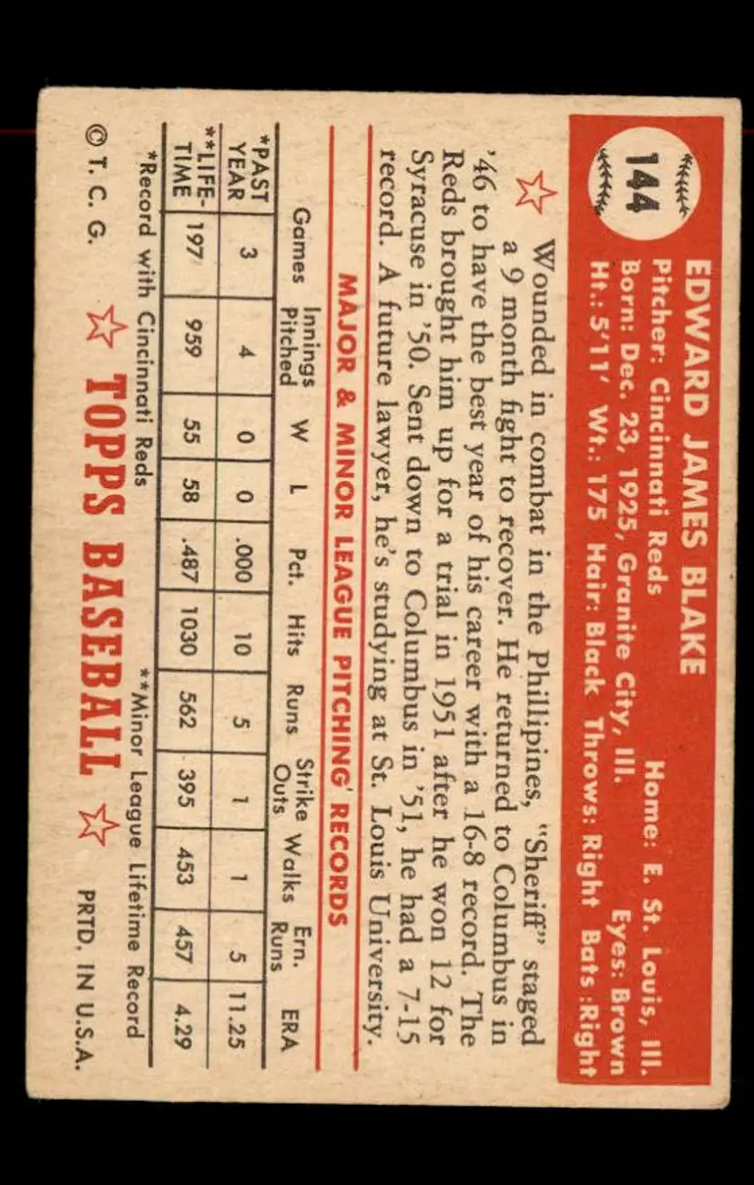 1952 Topps #144 Ed Blake - (pk-tl1) - Cincinnati Reds