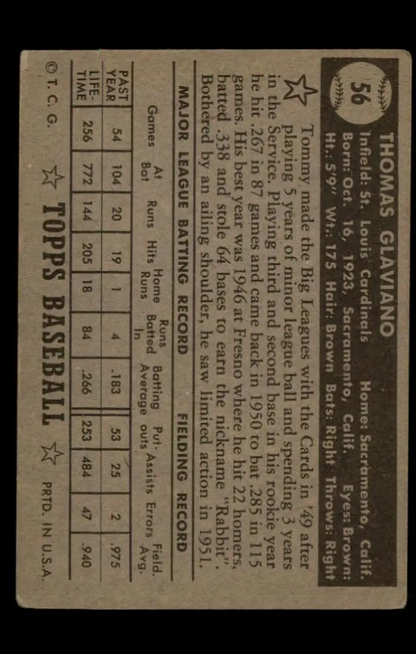 1952 Topps #56 Tommy Glaviano - (pk-tl1) - St. Louis Cardinals