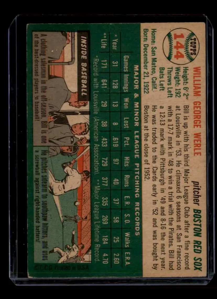 1954 Topps #144 Bill Werle - (pk-tl1) - Boston Red Sox