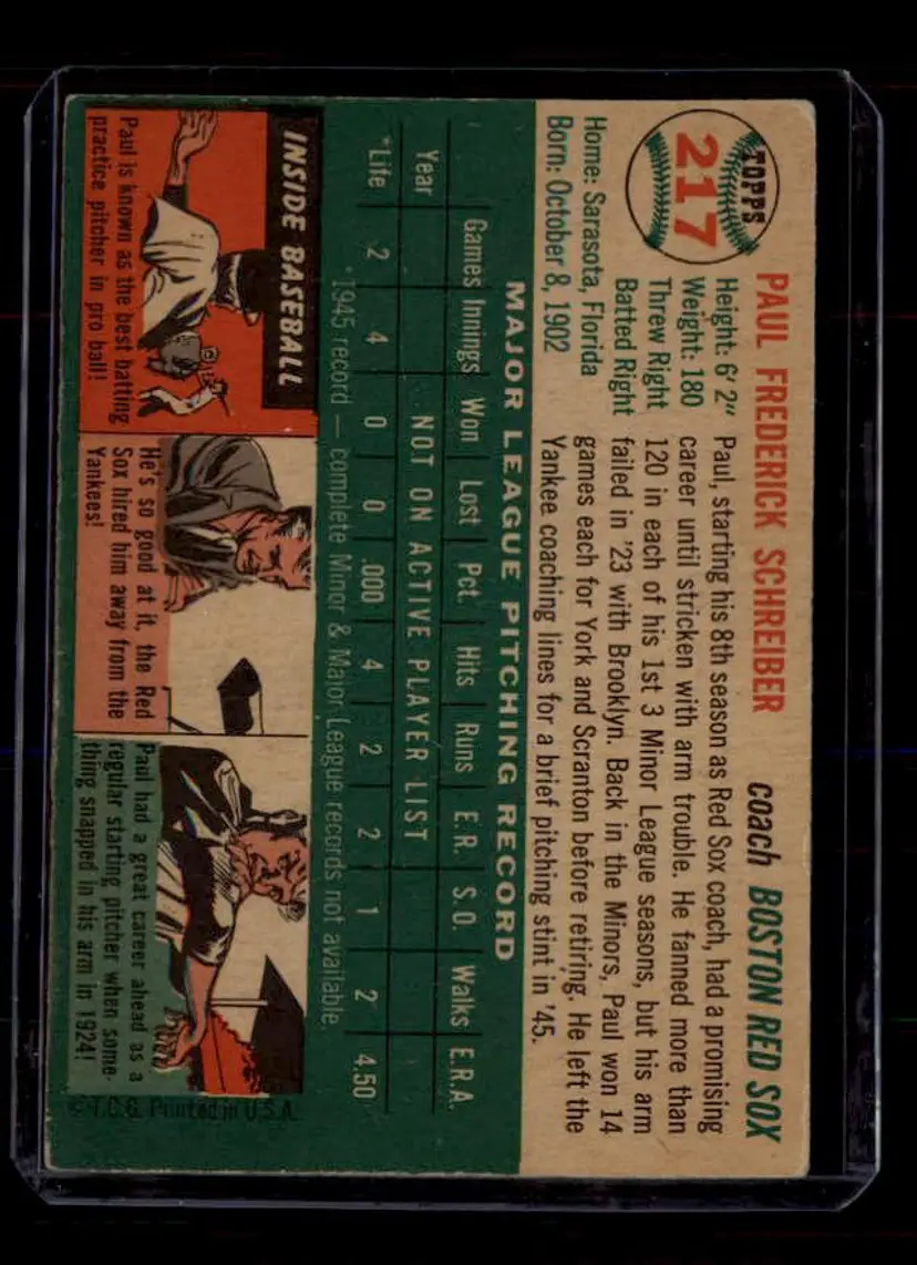 1954 Topps #217 Paul Schreiber - (pk-tl1) - Boston Red Sox