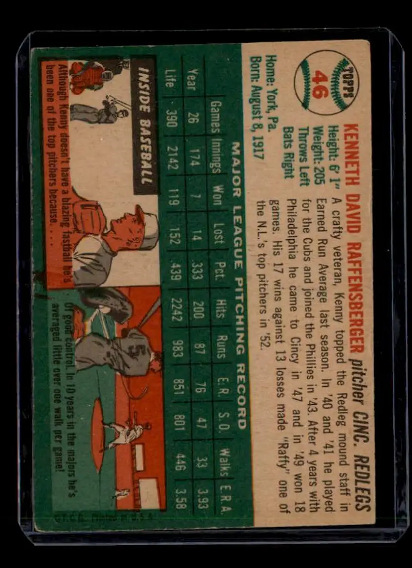 1954 Topps #46 Ken Raffensberger - (pk-tl1) - Cincinnati Redlegs