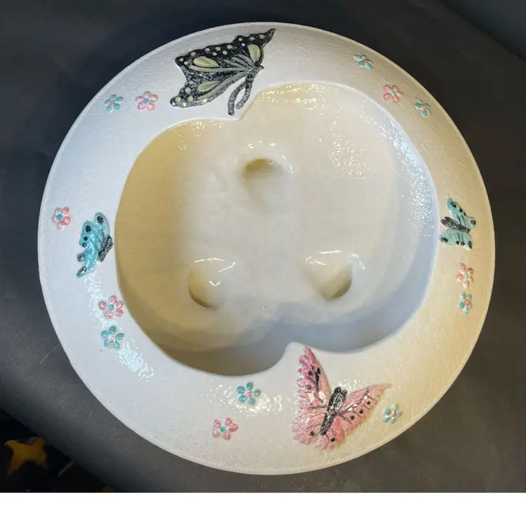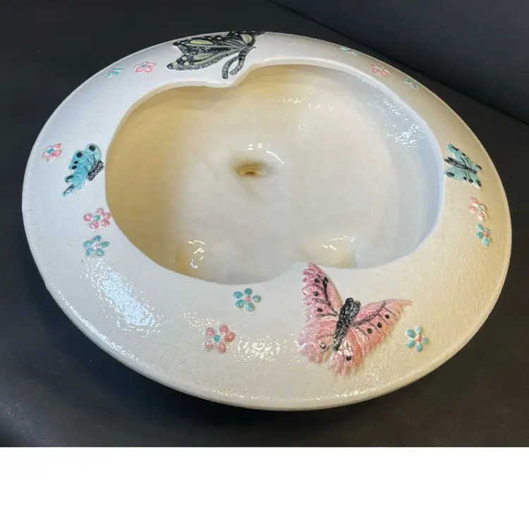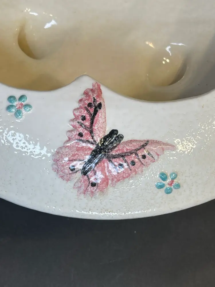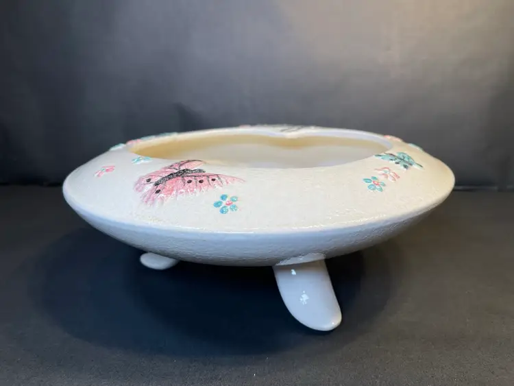 Add a touch of nature to your home decor with this exquisite Hull 1956 Butterfly Console Bowl/Planter B-21. This beautifully crafted clay piece feature a unique textured design and intricate butterfly motifs that are sure to impress. Made using traditional pottery techniques, these art pottery pieces are a perfect addition to any collection. The United States-made Hull pieces were created in the 1950s to add a touch of elegance to any home. The multicolor butterfly motif is complemented by the impressed backstamp, making this piece truly unique. Ideal for use as a decorative item or functional piece, this is a must-have for any home.