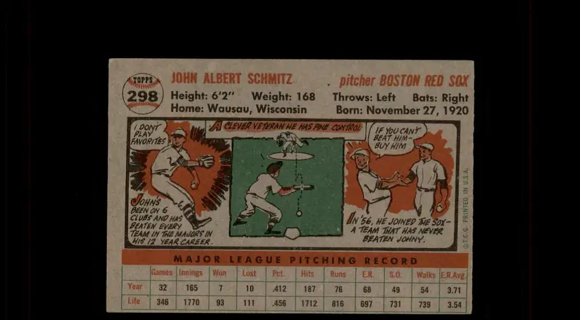 1956 Topps #298 Johnny Schmitz - (pk-tl2) - Boston Red Sox